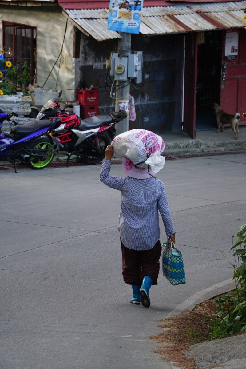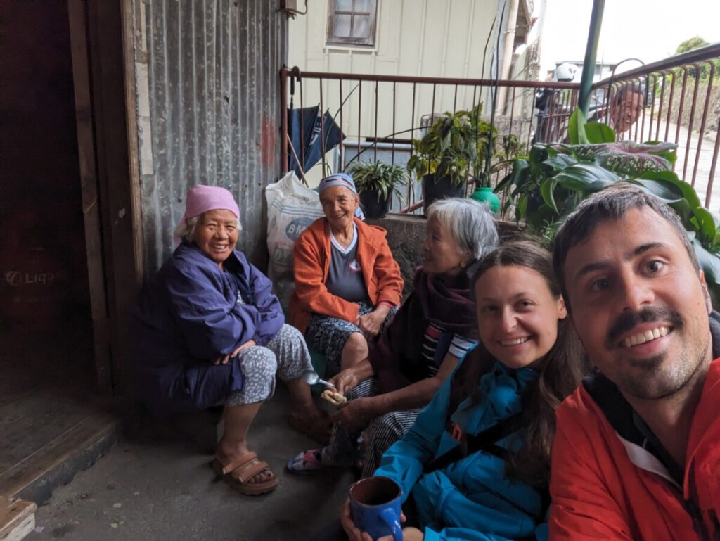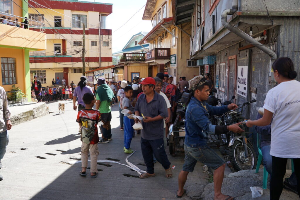 Wir erfuhren, dass am Samstag eine Hochzeit sei, und waren natürlich neugierig, wie das hier so abläuft. Wir gingen zur Kirche, wo die Trauung stattfand, und es wurde uns gesagt, dass die komplette Hochzeitszeremonie 3-4 Tage dauert, und insgesamt 19 Schweine geschlachtet werden. Eingeladen um mitzufeiern sei jeder, und nach der Trauung wurde Essen in Plastiksäcken an wirklich jeden ausgeteilt, die Schlange war ziemlich lang! Abends stießen wir wieder dazu, und es wurde auf der Straße zu Gong-Geklopfe getanzt. Dieses Trommeln auf Metall-Gongs wurde auf Dauer irgendwie etwas eintönig, aber andere Länder, andere Sitten 😉 Wir wurden auch aufgefordert mitzutanzen, was wir dann auch für kurze Zeit taten. Leider war es regnerisch und ziemlich kalt, weshalb wir dann nicht zu spät schlafen gingen. Aber schon toll, auf einer indigenen Hochzeit mitten in den philippinischen Bergen mitfeiern zu dürfen!
