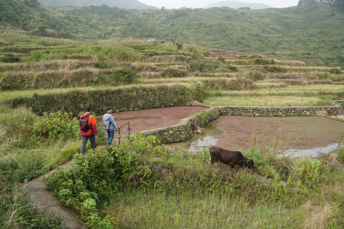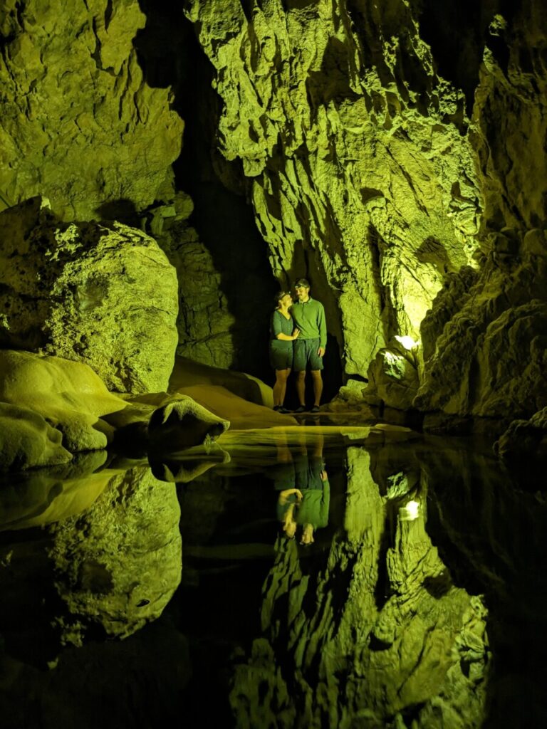 Weitere Sehenswürdigkeiten in Sagada sind die Höhlentouren. Wir buchten für Montag die „Cave Connection Tour“, welche mehrere Stunden dauern sollte. Am Eingang der Höhle konnten wir schon die gestapelten Särge sehen, irgendwie schräg. Die Höhlentour war super, und unser Führer erwies sich als geborener Fotograf! Man musste klettern und durch unterirdische Gewässer durchwaten, in der Regenzeit muss man sogar schwimmen. Wir waren in 1h 40min durch, was laut mehreren Leuten rekordverdächtig war! Nachmittags liehen wir uns einen Scooter, und unternahmen eine geführte Wanderung zum Großen Wasserfall durch ein abgelegenes Dorf und Reisterassen. Man merkt schon, ohne Guide kommt man nicht zu den Touristenattraktionen, es ist einfach eine zu wichtige Einnahmequelle für die Einheimischen geworden – zum Glück für unsere Verhältnisse noch recht billig. Danach fuhren wir noch nach Besao, da es hier anscheinend auch schöne Reisterassen geben soll. In Besao war es dann wirklich wunderschön, hier verirren sich keine Touristen mehr hin. Als wir durch den Ort fuhren, hielt uns ein Mann auf, wir sollten doch einen Kaffee trinken. Wir stiegen ab, und eine Runde älterer Damen saß vor dem Geschäft und schenkte uns sofort Kaffee in eine Tasse ein. Wir genossen eine angenehme Unterhaltung, auch die alten Damen konnten Englisch! Patrick wollte bezahlen, aber sie nahmen nichts… Das ist Gastfreundschaft!