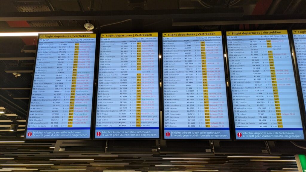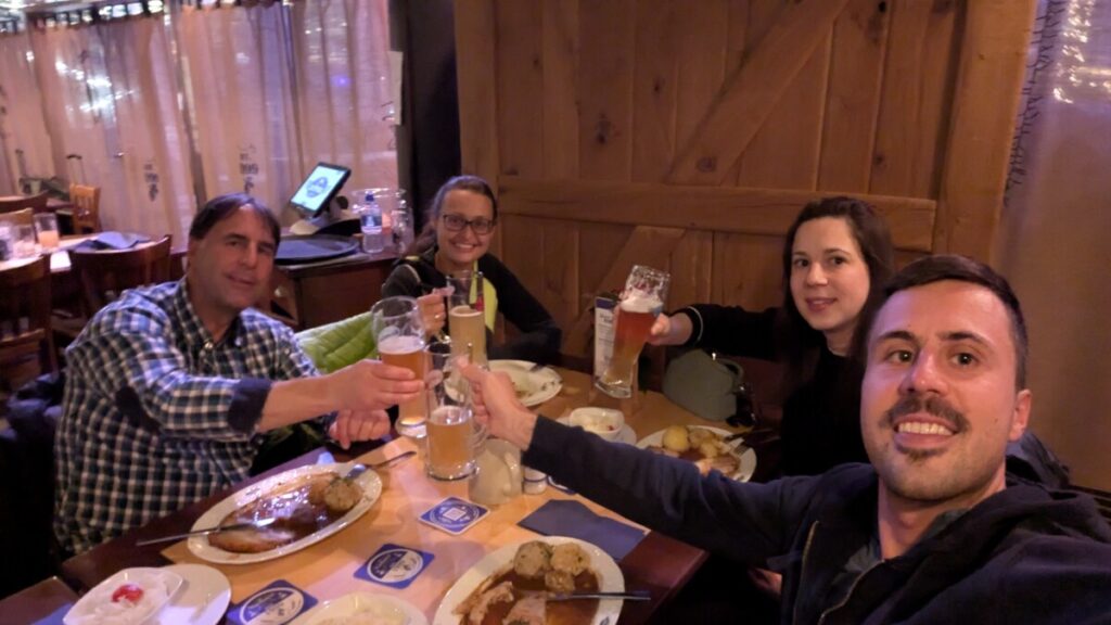Ausgerechnet der letzte von insgesamt 39 Flügen war dann noch der Spannendste. Der Flug von Lima nach Amsterdam hatte 45 Minuten Verspätung, und wenn der Anschlussflug nach München nicht ebenso verspätet gewesen wäre, hätten wir ihn nie und nimmer erwischt, da unsere Umstiegszeit lediglich 1h 15min betrug. In Amsterdam war es nämlich ziemlich stürmisch am 6. Dezember, und als wir dann in der Ankunftshalle auf die Tafel mit den Fluginformationen sahen, war diese komplett rot – fast alle Flüge waren verschoben oder gestrichen worden. Beide unserer Flüge hatten wir direkt bei der Linie KLM unter einem gemeinsamen Buchungscode gebucht, somit ist dann auch die Fluggesellschaft für die weitere Organisation verantwortlich, sollte man einen Anschlussflug verpassen. Generell war die KLM eine der feinsten Fluglinien, an Bord konnte man sogar gratis WhatsApp benutzen und die Verpflegung war auch in Ordnung. Fast zwei Stunden später hob dann unsere Maschine in Amsterdam ab. Leider war es in München genau so stürmisch und der Pilot brach die turbulente Landung nur wenige Meter über dem Boden ab und riss das Flugzeug in einer steilen Kurve nochmal nach oben. Ich schaffte es fast nicht, Romana zu beruhigen, die wie viele andere Fluggäste ziemlich verängst war. Oje… hoffentlich müssen wir wegen dem starken Wind nicht auf einem anderen Flughafen landen, dachte ich mir. Aber wir zogen eine Schleife und der Pilot versuchte ein zweites Landemanöver, welches dann gottseidank problemlos klappte. Diesmal dauerte die Gepäckausgabe auch nicht so lange wie damals, als wir von Peking kamen, denn es war ja ein Intra-Schengen-Flug und der Pass war schon in Amsterdam kontrolliert worden. Mein Papa und meine Schwester warteten schon auf uns und wir ließen es uns nicht nehmen, unsere Mägen im sehr vollen Airbräu mit Schweinsbraten und Bayrischen Bier zu füllen. Und als wir dann in Kufstein über die Grenze fuhren, brach dann doch der Patriot in mir durch und wir sangen alle lautstark im Auto „Dem Land Tirol die Treue“ 😅