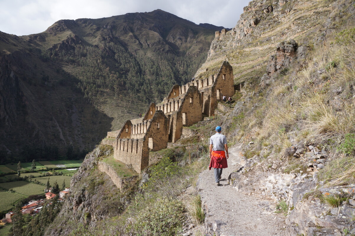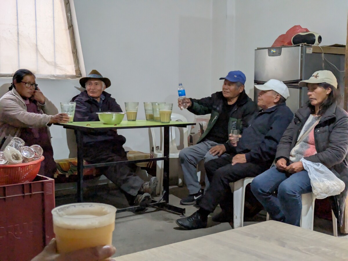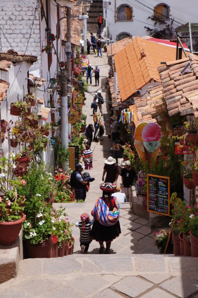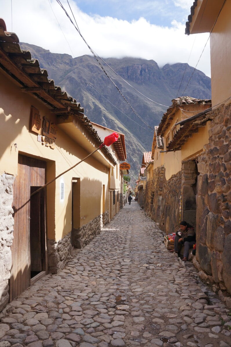 Nach einem gemütlichen Tag, den wir in Cusco verbrachten, fuhren wir mit einem Colectivo nach Ollantaytambo, einer kleinen Stadt im Heiligen Tal der Inka. Ollantaytambo ist umgeben von spektakulären Bergen und Inka-Ruinen, von denen manche auch (noch) kostenlos angeschaut werden können. Rund um den Hauptplatz ist es irre touristisch, aber sobald man ein paar Meter abseits in den Gässchen verschwindet, findet man das authentische Peru. Dann kann man auch rote Plastiksäcke an Stöcken erspähen, die vor Hauseingängen platziert wurden. Das bedeutet so viel wie “ausg’steckt is” und es gibt hier frisch gebrautes Chicha de jora. Das sogenannte “Inka-Bier” wird aus Mais gebraut und fermentiert und hat bis zu 3% Alkohol. Dieses Gebräu mussten wir natürlich auch probieren, weshalb wir uns gleich in einem Raum mit lauter bereits beschwipsten Einheimischen wiederfanden und ebenfalls Chicha tranken. Es gab zwei Varianten, grün und rot, wobei das rote Chicha leicht nach Erdbeeren schmeckte. Alle anwesenden Männer tranken das Grüne. Der Geschmack ist schwer zu beschreiben, irgendwie schon nach Mais. Die ersten Züge schmeckten weder Romana noch mir, aber zum Schluss hinaus wurde das Gesöff immer besser und besser 😂