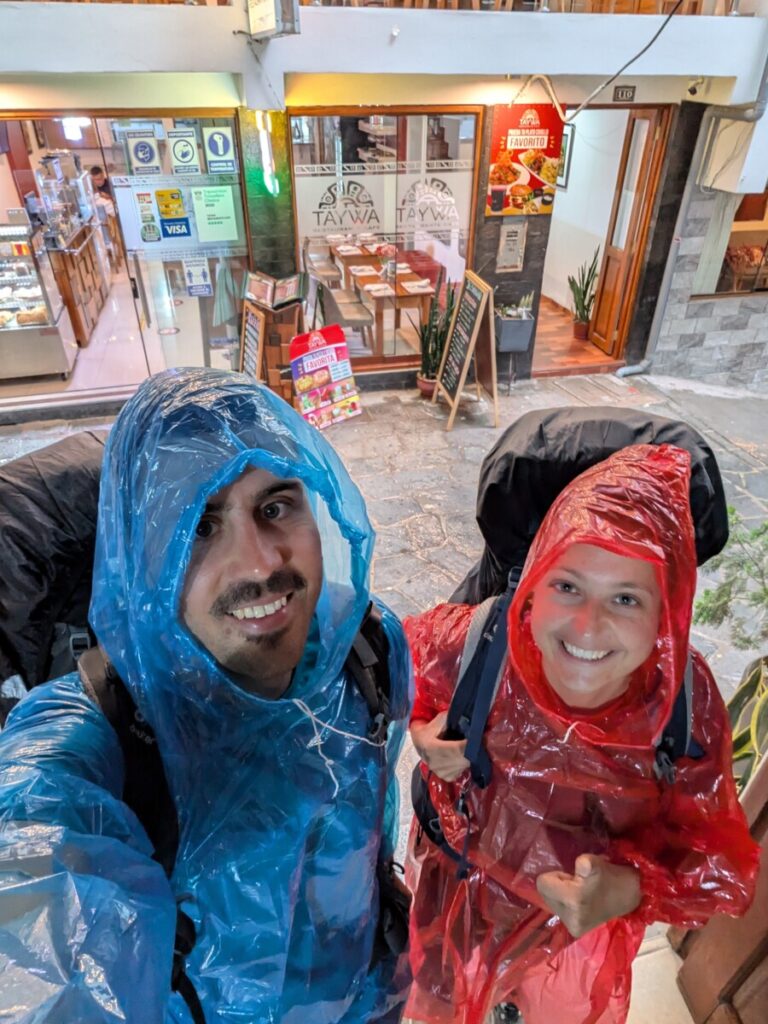 Der nächste Tag startete dann mit starkem Regen, was für ein Glück wir doch hatten, Machu Picchu genau am richtigen Tag angeschaut zu haben 😊 Allerdings waren wir leicht besorgt, dass die wilde Straße zurück nach Cusco eventuell nicht mehr befahrbar sein könnte, da uns jemand gesagt hatte, dass in der Regenzeit schon mal Muren die Straßen blockieren können. Wir kauften uns zwei Plastik-Ponchos für den Rückweg nach Hidroelectrica, die uns vor dem ärgsten Regen schützten, denn da hätten unsere Regenjacken nicht lange trocken gehalten. Der Rückweg verging dann wie im Flug, denn wir hatten eine gute Unterhaltung mit einem Deutschen. Er erzählte uns, dass er am Vorabend ganz spontan ein Ticket für Machu Picchu beim Tourismusbüro bekommen hat. Die Online-Tickets sind nämlich wochenlang im Voraus schon vergriffen, aber anscheinend kann man in der Nebensaison ohne Probleme einfach so hinfahren und ein Ticket ergattern.