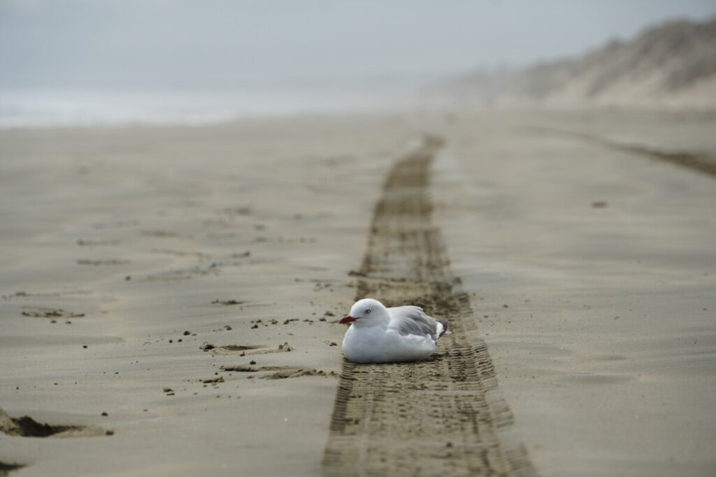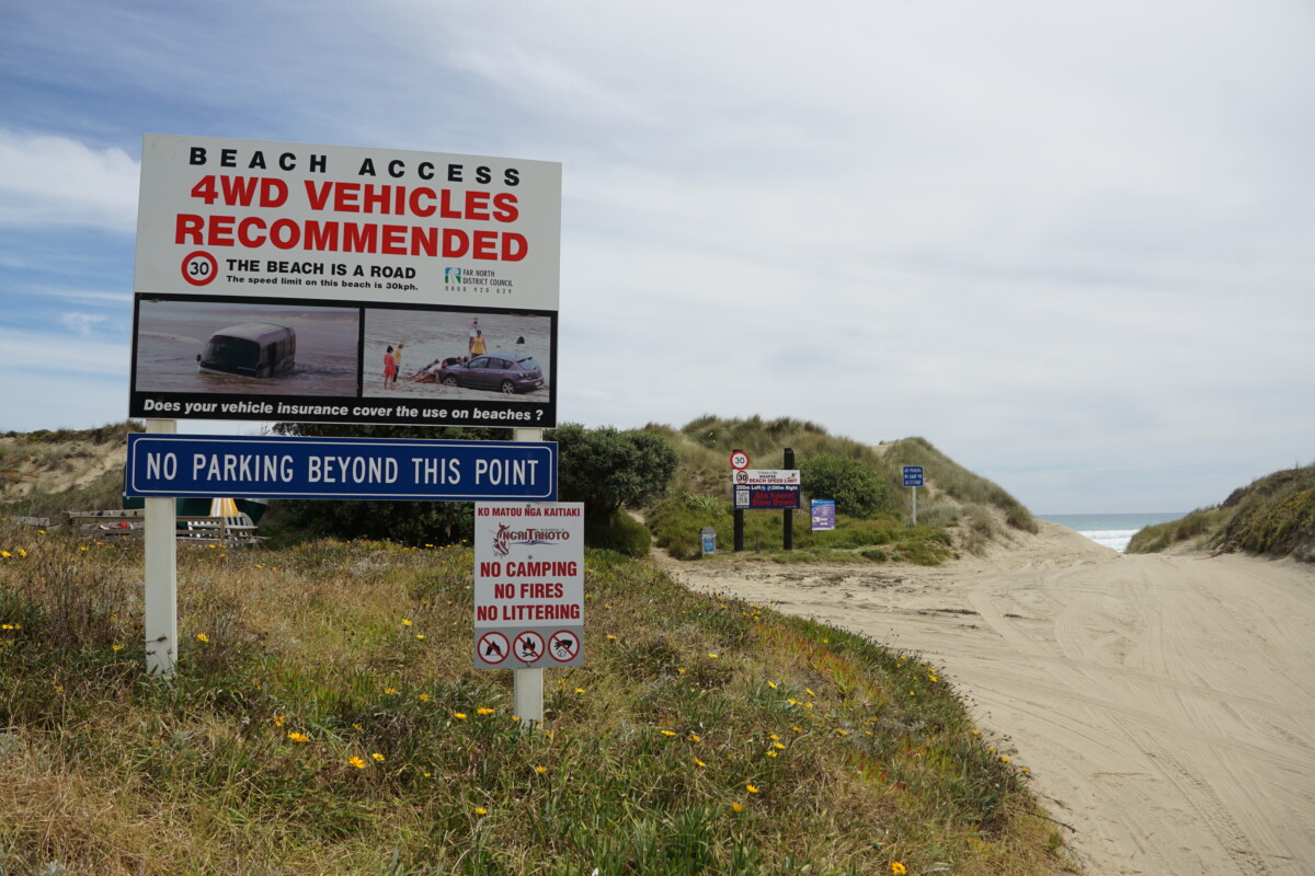 Wieder südwärts unterwegs mussten wir natürlich auch zum bekannten 90-Mile-Beach fahren, der eigentlich „nur“ 55 Meilen lang ist, was 88 Kilometern entspricht! Das muss man sich einmal vorstellen, ein ununterbrochener Strand von Kufstein bis Zirl. Das coole daran ist, dass man auf diesem Strand mit dem Auto fahren darf. Allerdings sollte man nur 2 Stunden vor und nach Ebbe den Strand befahren, es sind schon viele Fahrzeuge von der Flut überrascht worden oder steckengeblieben und abgesoffen! Ein Allrad-Antrieb wird natürlich wärmstens empfohlen, da man sich im Sand leicht eingraben kann. Da wir leider keinen haben, sind wir zur Waipapakauri Ramp gefahren, bei der man auch mit 2WD Autos halbwegs gut an den Strand runterkommt. Dort tasteten wir uns etwas heran, nicht, dass wir ebenfalls aus dem Sand gezogen und abgeschleppt werden müssen. Aber knapp oberhalb des Wassers, also wo der Sand noch nass war, konnte man gut fahren ohne einzusinken, das machte dann so richtig Spaß. In der Stunde, die wir ungefähr am 90-Mile-Beach verbracht haben, kam gerade mal 1 Auto vorbei, sonst war es wie ausgestorben.