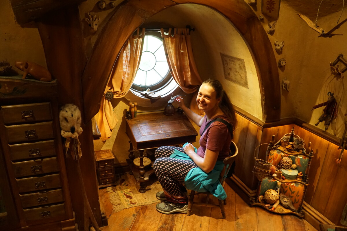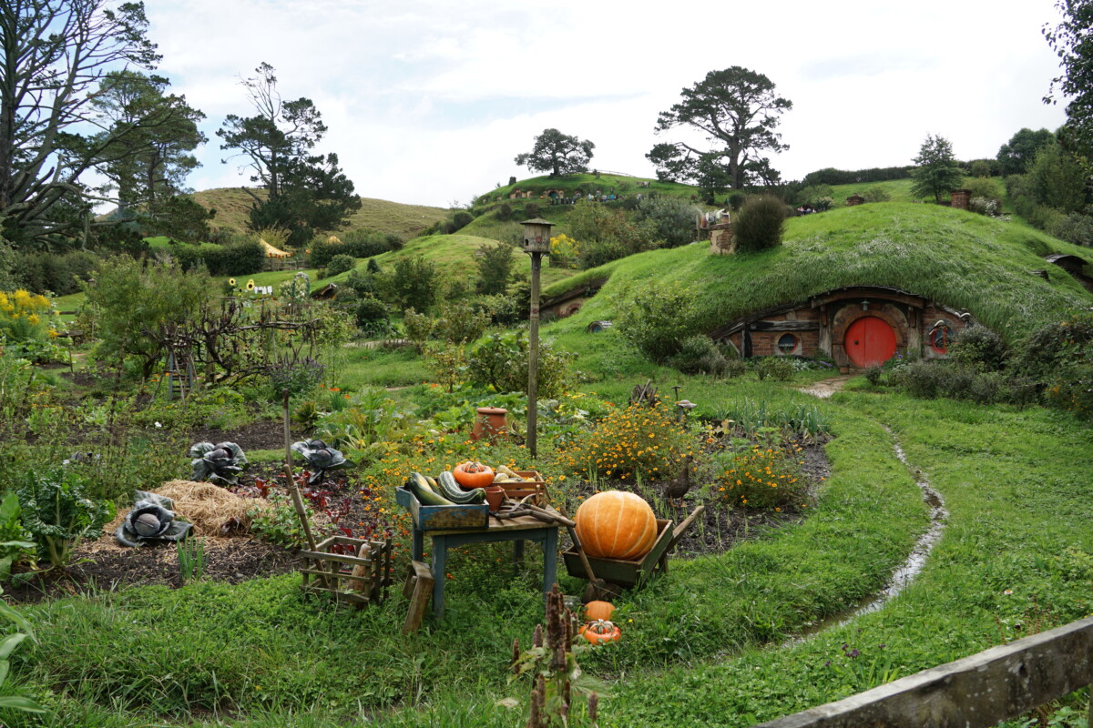 Für Sonntag stand dann die Führung durch den Original-Drehort von Hobbingen aus „Herr der Ringe“ und „Der Hobbit“ an, welche wir schon über eine Woche im Voraus buchen mussten. Dies dürfte die meistbesuchte Touristenattraktion Neuseelands sein, da in 10 Minuten Slots die Besucher-Gruppen durch Hobbingen geführt werden. Laut unserem Guide ist der grüne Drache, also das Dorf-Gasthaus aus dem Film, in dem man auch in Echt ein Bier bekommt, das bestbesuchteste Pub Neuseelands. Wir hatten dann richtig Glück mit unserer Führung am Nachmittag, da es richtig sonnig wurde und es bis Mittag noch aus Kübeln schüttete. Hobbingen selbst ist wirklich idyllisch und extrem detailreich gestaltet. Es wurde nach den Dreharbeiten für Herr der Ringe 2003 komplett abgerissen und für Der Hobbit (2012) mit permanenten Baustoffen neu gebaut und seitdem gewartet. Für Herr-der-Ringe-Fans ein Muss, auch wenn das Ticket mit 120$ weh tut (letztes Jahr noch 89$!)