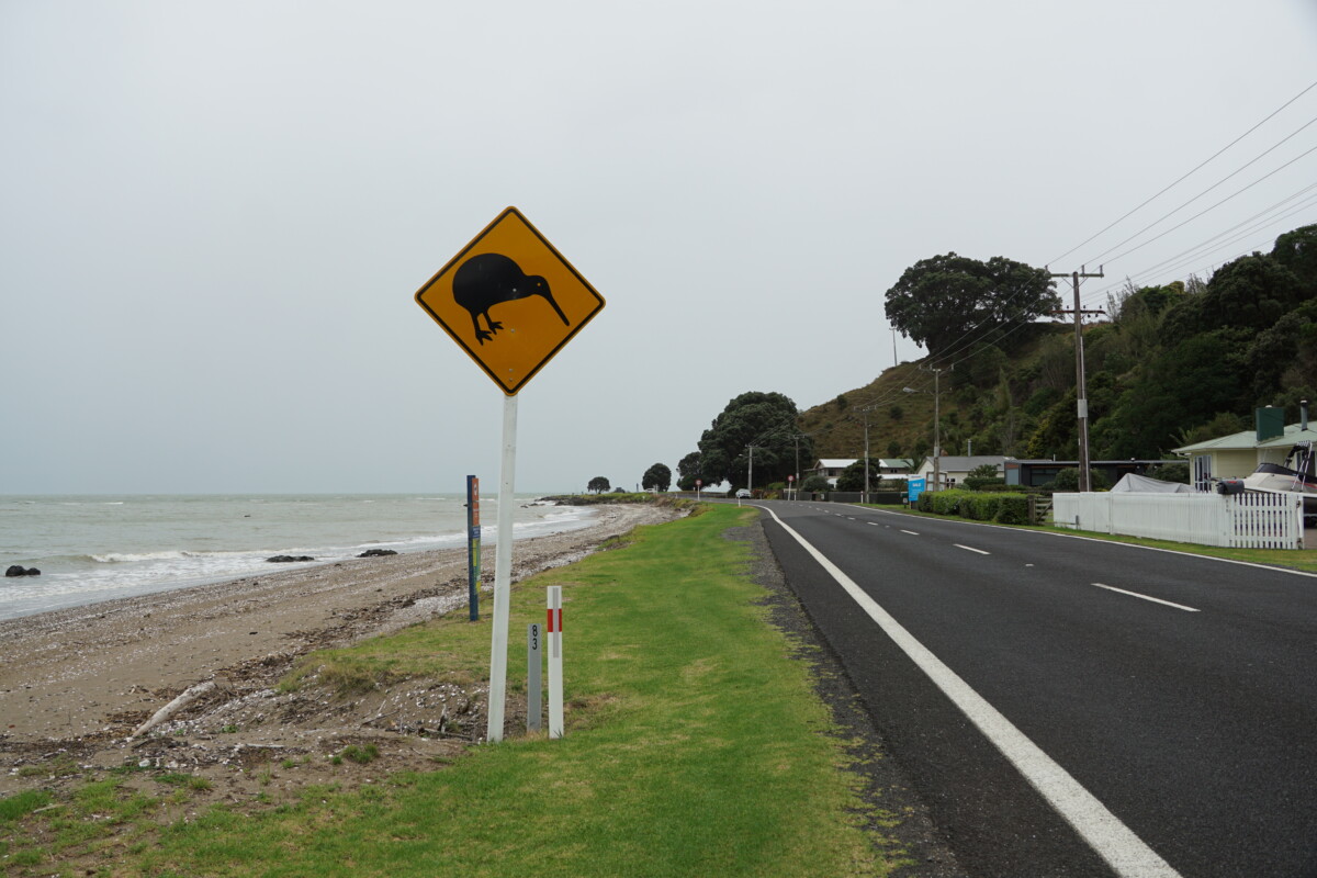 Kurz nachdem wir den letzten Beitrag veröffentlichten, gingen auf einmal unsere Seitentüren nicht mehr elektrisch auf. Oje, die Kühlbox und das Aufladen der Handy-Akkus hat sicherlich die Autobatterie leer gesaugt über den ganzen Tag… und wir haben nicht mal ein Starterkabel dabei! Zum Glück hatte eine Camping-Nachbarin ein solches Kabel und ein netter älterer Neuseeländer fuhr mit seinem Jeep sogleich neben unser Auto und half uns beim Starten, was glücklicherweise auch funktionierte! Jetzt nur nicht mehr abstellen und gleich eine größere Runde drehen, damit wir die Autobatterie wieder etwas aufladen. Wir fuhren zur nächsten Tankstelle, da wir sowieso Motoröl kaufen wollten, weil die nachmittägliche Ölmessung einen besorgniserregenden Tiefststand anzeigte. (Wir fanden dann im Nachhinein heraus, dass unsere Vorgänger doch kein volles Service mit Ölwechsel gemacht hatten…). Um unseren tollen Stellplatz am Strand nicht zu verlieren, dachten wir uns, dass wir einfach unseren Camping-Tisch inzwischen stehenlassen. Als wir ca. 30 Minuten später von der Tankstelle wieder zurück kamen, war kein Camping-Tisch weit und breit mehr zu sehen! Das Rätsel um den verschwundenen Billigtisch, den wir erst am Vortag gekauft hatten, löste sich erst auf, als unser Yoga-praktizierender Hippie-Nachbar zurückkam und sagte, er habe geglaubt, wir seien abgereist und hätten den Tisch vergessen…