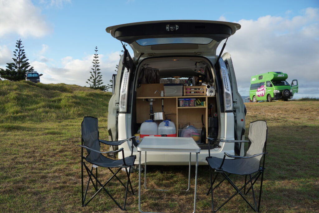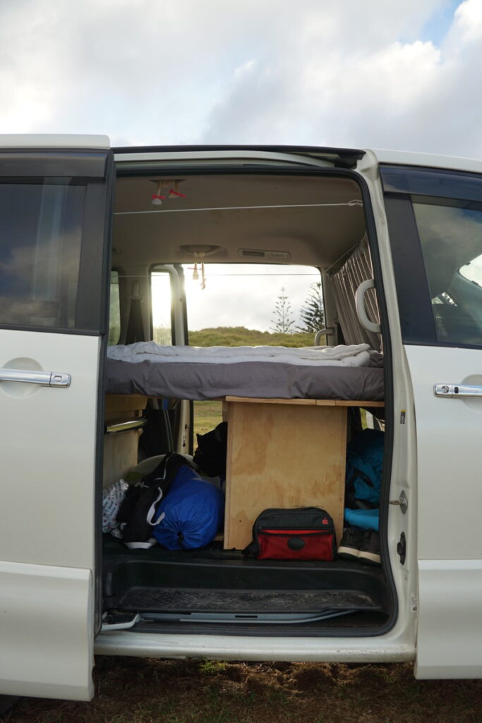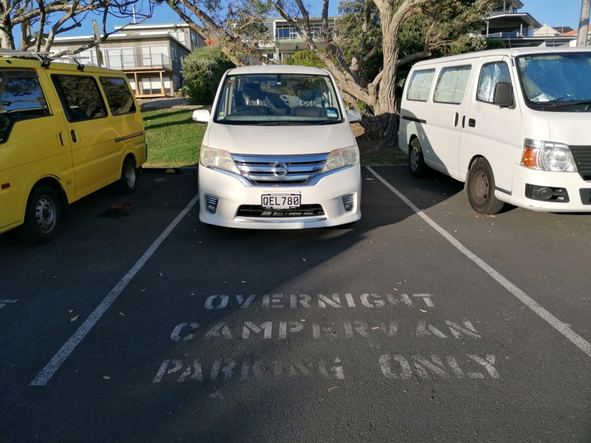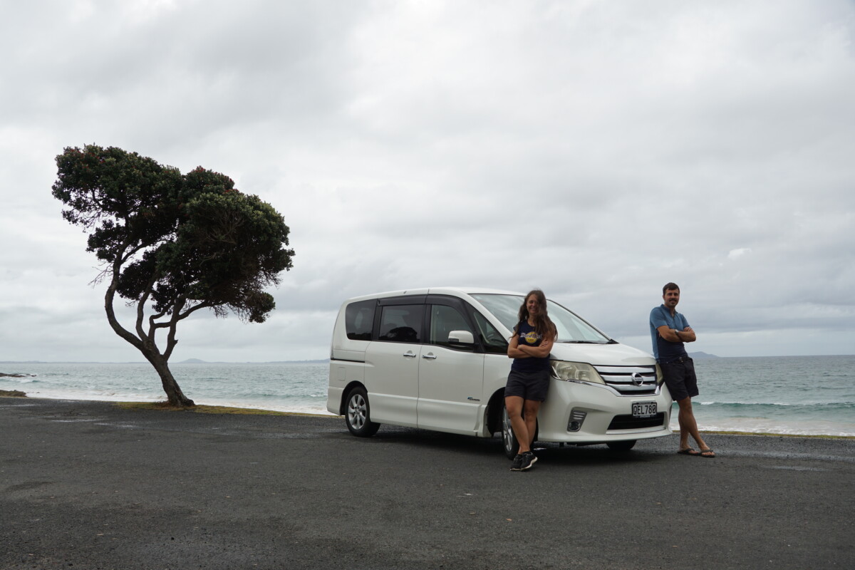 Am Ende unseres Neuseeland-Trips soll das Auto wieder verkauft werden, hoffentlich zu einem Preis nicht weit weg vom Kaufpreis. Manche hatten schon Glück und konnten einen „Campervan“, wie die umgebauten Kleinbusse heißen, mit einem Gewinn am Ende der Reise verkaufen. Das hängt in Neuseeland aber stark von der Saison ab, in der Hauptsaison von November bis Jänner sind die Preise sehr hoch und Campervans schwierig zu bekommen. Wir hatten ja schon im Vorfeld über Facebook-Gruppen Kontakt mit diversen Verkäufern aufgenommen und Besichtigungstermine ausgemacht. So trafen wir uns am 20. Februar direkt nach Ankunft in Auckland am Flughafengelände mit einem französischem Pärchen und sie zeigten uns einen Nissan Elgrand Baujahr 2005, der schon recht vielversprechend war. Eine Probefahrt durfte natürlich auch nicht fehlen, leider war der Verkehr rund um den Flughafen sehr stark. Wir sagten aber noch nicht fix zu, denn für den kommenden Tag war noch eine Besichtigung mit einem jungen deutschen Paar vereinbart, ebenfalls ein Nissan, aber Modell Serena und Baujahr 2012. Uns war wichtig, dass unser zukünftiges Auto wenig Kilometer auf dem Hodometer hat und nicht zu alt ist, zumindest unter 200.000 km sollten es sein, denn es fahren genügend alte Schüsseln mit über 600.000 km auf Neuseelands Straßen! Aber beide Nissans haben nur etwa 150.000 km, also das passt schon mal.