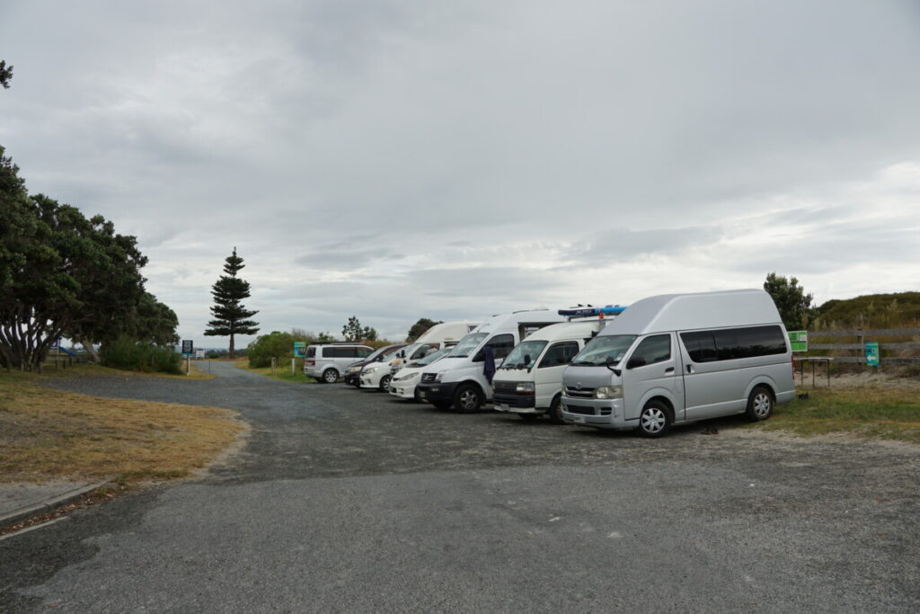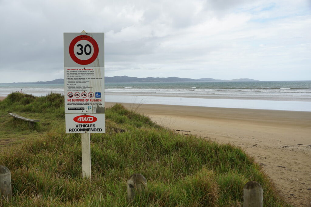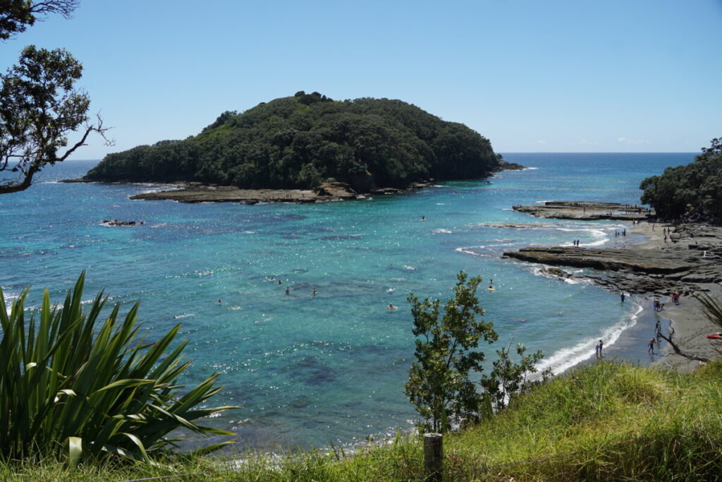 Die erste Nacht verbrachten wir auf einem Parkplatz nördlich von Auckland direkt am Meer, bei dem drei Plätze für Freedom-Camper reserviert sind. Fast alle Stellplätze findet man mit Apps wie CamperMate, WikiCamps oder Rankers Camping, wobei alle 3 unterschiedliche Daten und Campingplätze eingepflegt haben. Wir schliefen gut und erfrischten uns in der Früh gleich mit einer Runde Schwimmen im Meer. Was will man mehr? Gratis Übernachtung direkt am Meer gelegen, eine öffentliche Toilette in der Nähe, Sitzbänke und Picknicktische sowie Müllkübel. Generell ist die öffentliche Infrastruktur super: extrem viele öffentliche WCs (alle gratis), kostenlose Parkplätze, viele Müllkübel, Entleerstationen für Schmutzwasser, etc.