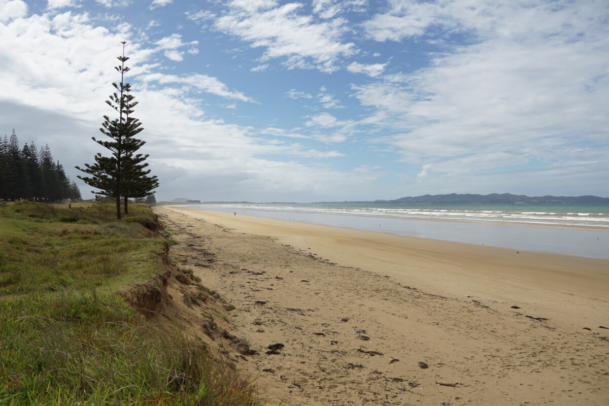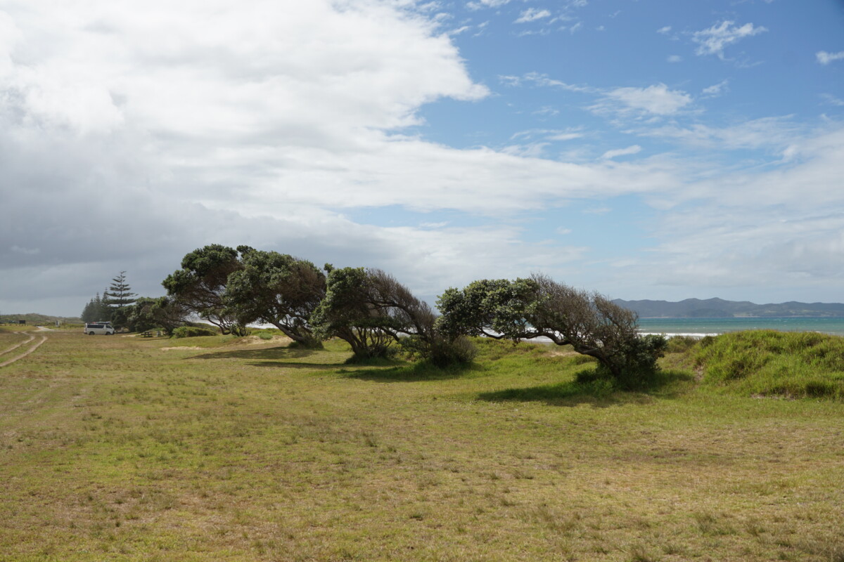 Bis jetzt fuhren wir jeden Tag ca. 2 Stunden Richtung Norden, um bis ganz an das Cape Reinga und dem 90-Miles Beach zu kommen. Beim Hundertwasser-Zentrum in Kawakawa, dem Ort in dem Hundertwasser bis zu seinem Tod lebte, verbrachten wir ebenso eine Nacht, und nutzten dort die bekannteste Toilette Neuseelands, die ganz im Stil des Künstlers gebaut wurde. Gestern kamen wir beim Tokerau Beach an, und hier gefällt es uns so gut, dass wir gleich noch eine Nacht bleiben. Der Sandstrand ist so lang, dass man die Enden nicht sieht, und man hört den ganzen Tag die Wellen rauschen. Einzig die beißenden Fliegen machen uns heute zu schaffen. Gestern vollzogen wir auch noch die Taufe unseres japanischen Fahrzeuges und gaben ihm den Namen Sigrid. Warum Sigrid? Keine Ahnung!