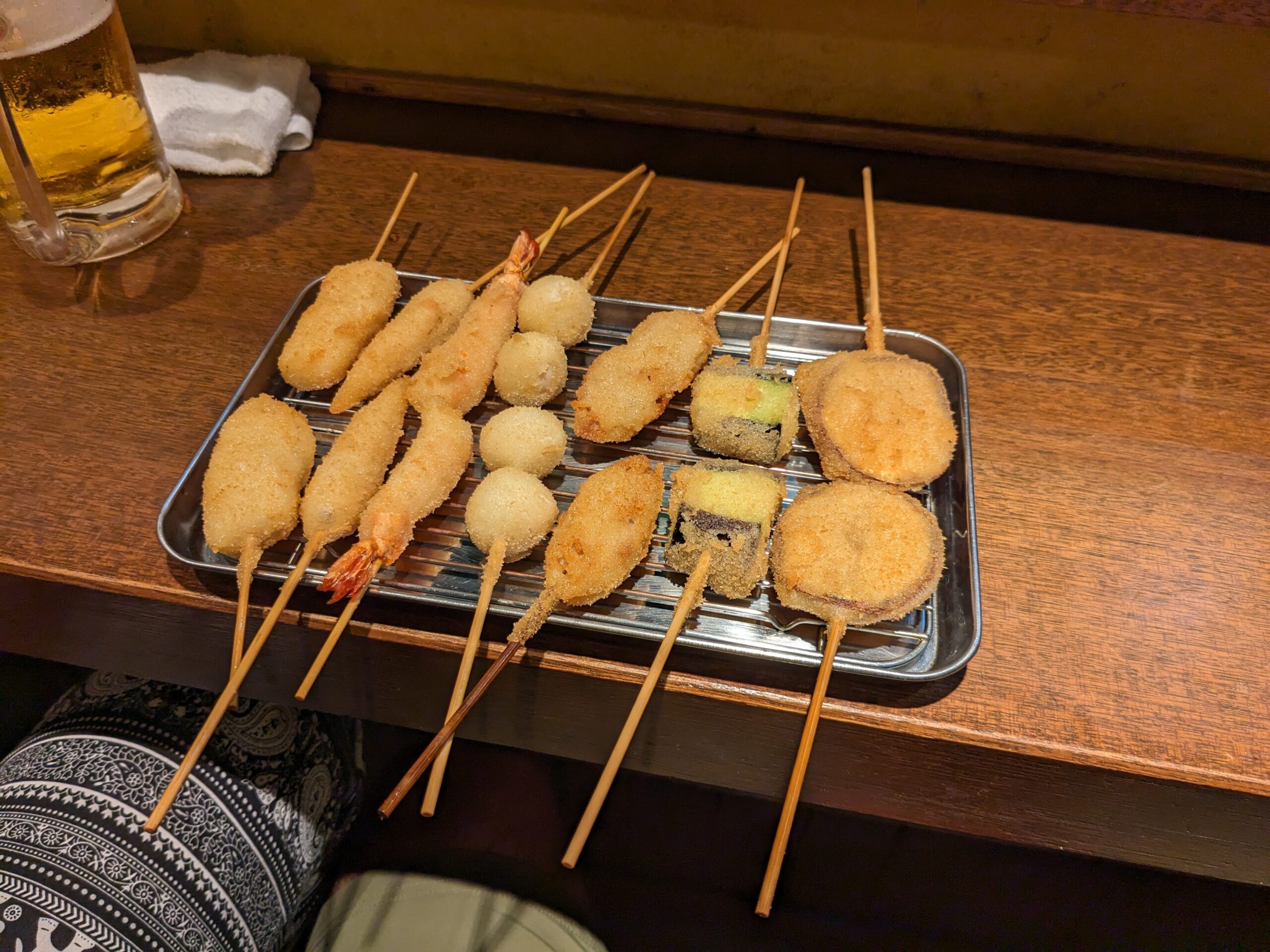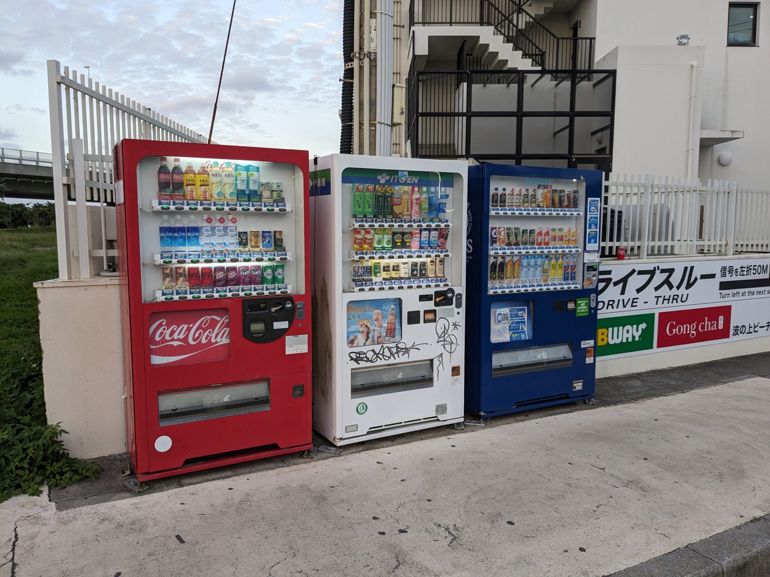 Zumindest nachdem wir uns nach den doch anstrengenden 2 Flügen ausgeschlafen haben. Eine Monorail-Bahn hat uns ins Stadtzentrum von Naha gebracht, wo wir bis zum Einchecken noch in einem Park verbracht haben. Das Hotelzimmer war klein, hatte aber jede Menge technischen Schnickschnack zu bieten. Abends suchten wir ein authentisches Lokal zum Essen, das auch Einheimische besuchen. Wir landeten in einem winzigen Raum, das Essen wurde an der Bar serviert und war ausgezeichnet. Mit Englisch kamen wir nicht weit, aber mit dem Google-Übersetzer konnten wir uns zumindest mit ein paar sehr freundlichen Japanern unterhalten und wurden sogar auf einen gespritzten Awamori (Okinawa Schnaps) eingeladen! Danach suchten wir einen Bankomaten (ATM auf englisch+japanisch), welche zwar zahlreich vorhanden sind, aber nicht alle europäische Bankkarten akzeptieren. Wir fanden nur welche, die eine geringe Gebühr von 220 Yen (ca. 1,50€) verlangten. Maximal 100000 Yen kann man abheben.