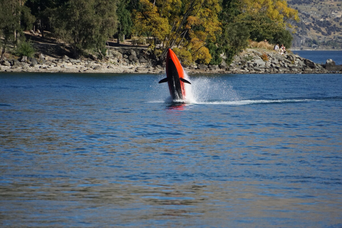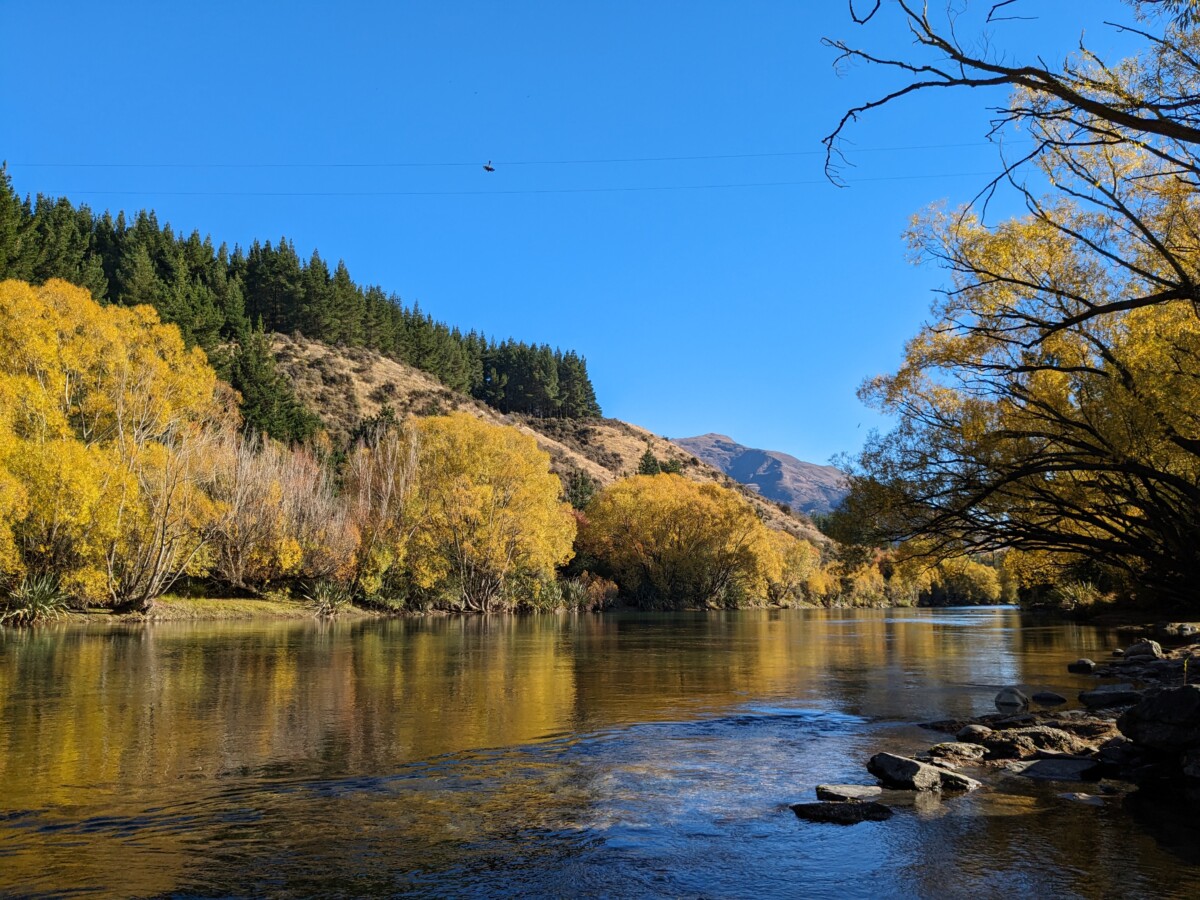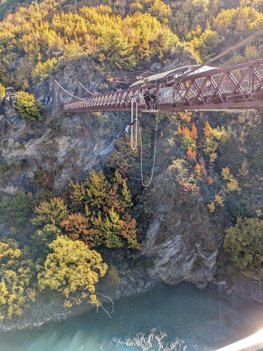 In Wanaka hielten wir für einen Foto-Stopp direkt an der Seepromenade, die schönen gelb verfärbten Bäume zeigen wieder die hiesige Jahreszeit auf. Die größere Stadt Queenstown ist bei den Touristen vor allem für das Angebot an Adrenalin-Aktivitäten beliebt. Wir fuhren deshalb zur historischen Kawarau Brücke, um einigen Bungy-Jumpern zuzuschauen, wie sie sich in die malerische Schlucht stürzten. Ein paar von den Mutigen tauchten sogar mit dem Kopf im Wasser ein, bevor das Gummiseil sie wieder hochkatapultierte. In Queenstown, das eine tolle Lage direkt am See und Blick auf eine unheimlich anziehende Bergkulisse hat, staunten wir nicht schlecht, als wir kleine Boote senkrecht aus dem Wasser hüpfen sahen. Die wie Haie aussehenden Boote können kurz abtauchen und dann zur Belustigung eines Passagieres wie eine Rakete aus dem Wasser schießen… was es nicht alles gibt! Der Ort selbst wirkt modern, übertouristisch und der Verkehr dorthin war der schlimmste bis jetzt in ganz Neuseeland, aber wir verstehen gut, warum hier jeder hin will.