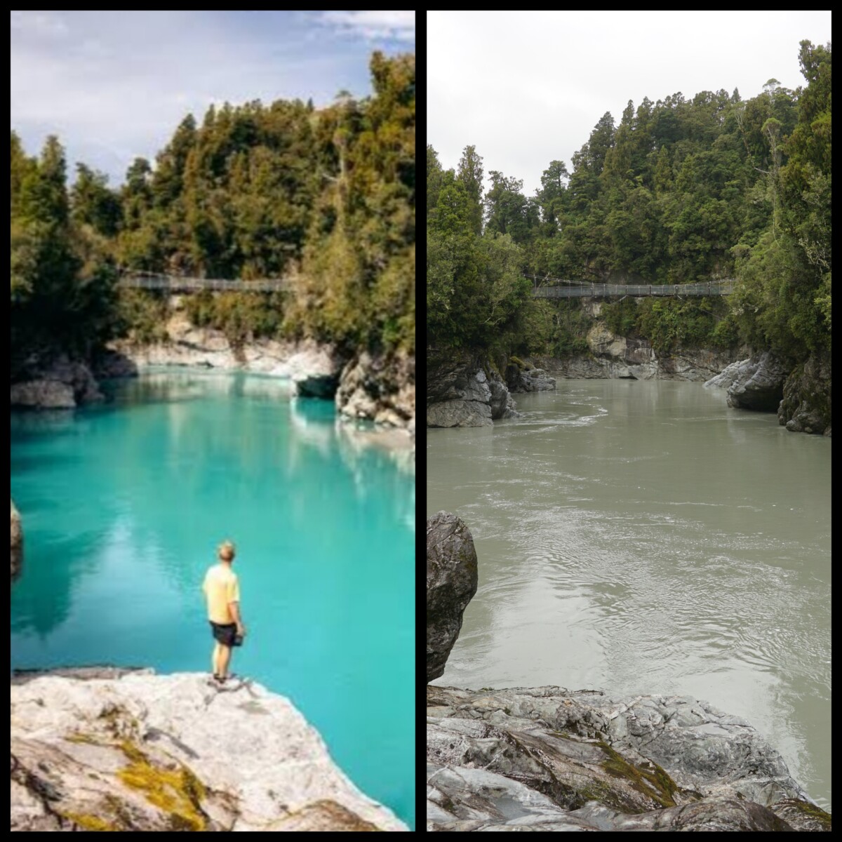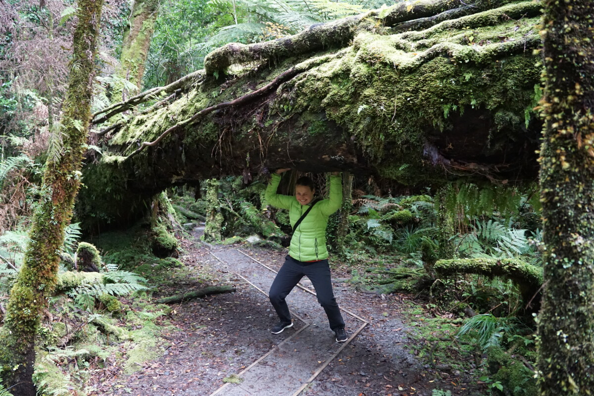 Am nächsten Tag stand die Hokitika Schlucht an, die normalerweise aufgrund des türkisen Wassers bei den Touristen Entzücken auslöst. Aufgrund des starken Regens in der Nacht hatte das Bachwasser bei uns dafür eine schön braune Farbe 😉 In ganz Neuseeland, aber speziell hier in der Gegend von Hokitika, gibt es sehr viel Greenstone (Jade), der in der Maorikultur sehr geschätzt wird. Wir besuchten eine der vielen Greenstone-Schmuckmanufakturen in Hokitika, aber wie so viele kleinere Ortschaften in Neuseeland wirkte auch diese ziemlich verlassen und als hätte sie die beste Zeit schon hinter sich.