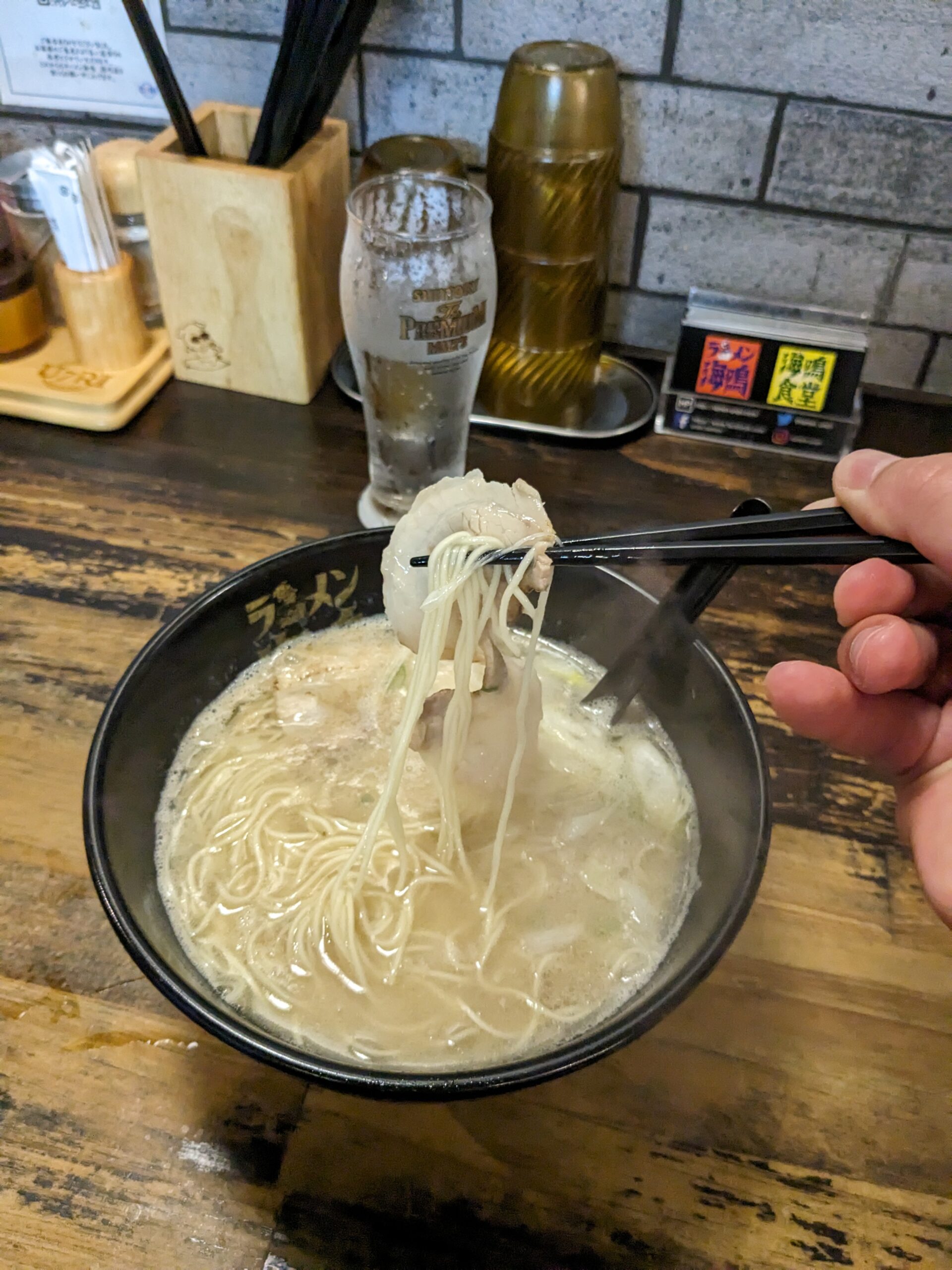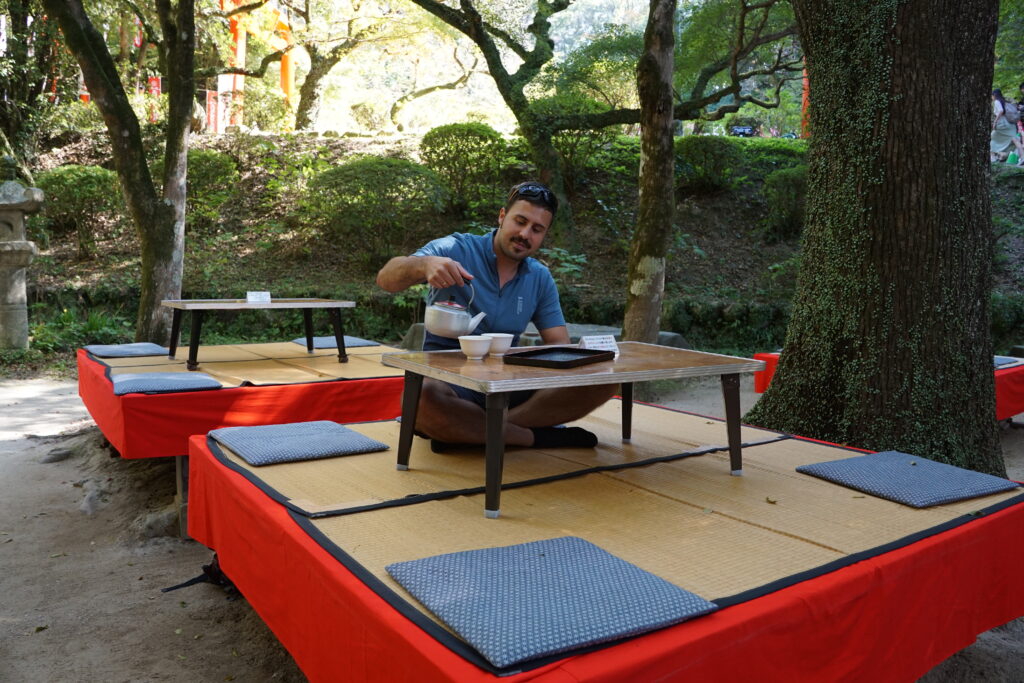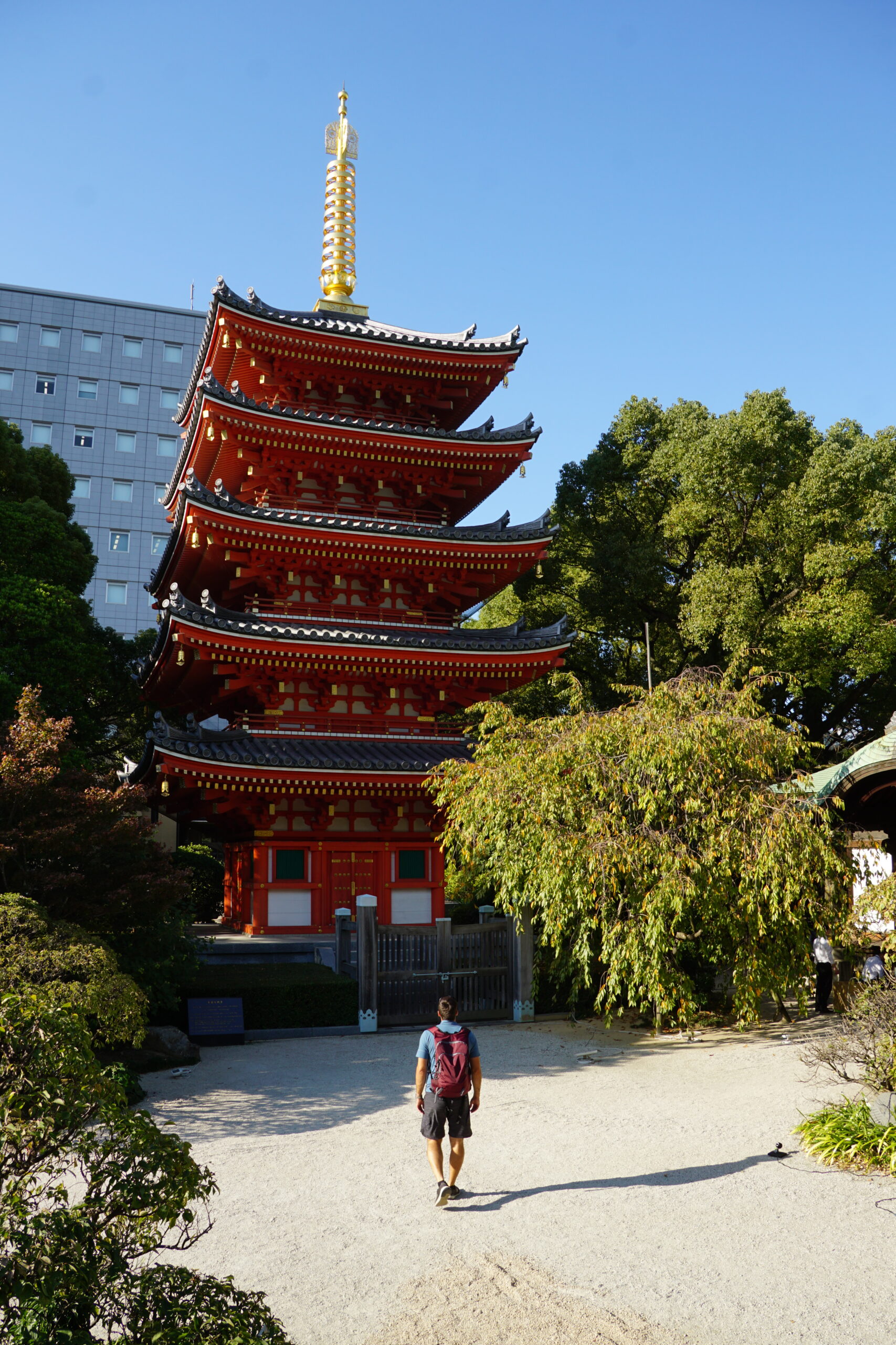 Der relativ günstige Flug (45€ p.P.) von Naha brachte uns in die 1.6 Millionen Metropole Fukuoka, der größten Stadt auf Kyushu. Kyushu ist die drittgrößte Insel von Japan und liegt südwestlich unterhalb der Hauptinsel Honshu. In Fukuoka verbrachten wir 2 Nächte. Am ersten Abend besuchten wir zum ersten Mal ein typisches Ramen-Restaurant, in dem man preiswert Ramen (eine Nudelart) geräuschvoll aus der Suppenschale schlürft. Bestellt wird vorher an einem Automat, der dann einen Zettel ausspuckt, den man dem Küchenpersonal übergibt. Danach führte uns der Weg an einer riesigen Pachinko-Spielhalle vorbei, in der gefühlt 1 Million Automaten und Slotmaschinen einen Riesenkrach machen. Die Japaner stehen total auf diese Spielautomaten, welche durch eine Gesetzeslücke doch irgendwie das normalerweise verbotene Glücksspiel ermöglichen. Dann ging es in eine winzige Bar (5 Barhocker, 1 Tisch), in der wir eine gute Unterhaltung mit Katsuya, dem Barkeeper, und zwei seiner Freunde führten. Die Gastfreundschaft war legendär, Katsuya lud uns auf alles mögliche ein und holte uns sogar noch die lokale Spezialität „Mentaiko“ (scharfer Fischrogen, ähnlich wie Kaviar) vom nächsten Geschäft, damit wir das probieren sollen. Es war wirklich speziell…
