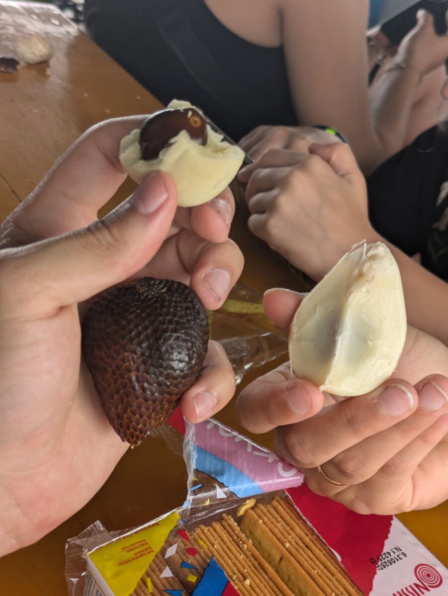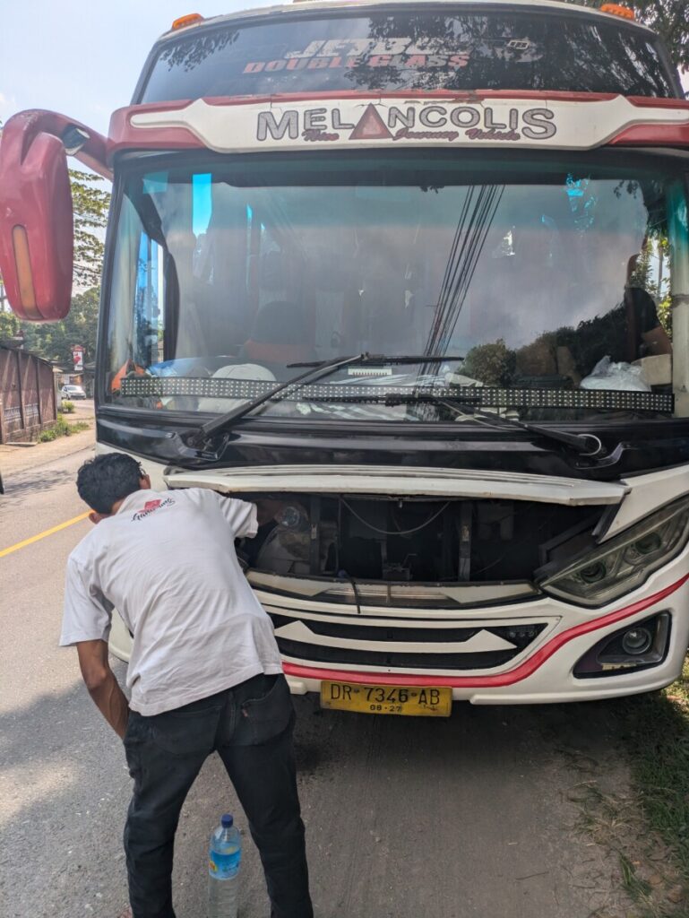 Der Bus, der uns zum Schiff an die andere Inselseite bringen sollte, startete dann erst um 12:30 und war nicht gerade luxuriös. Nach kurzer Fahrt hatten wir bereits die erste Panne und Kühlerwasser musste nachgefüllt werden bzw. der Motor wurde mit Wasserflaschen händisch gekühlt 🙈 Auch etwas merkwürdig war, dass wir zweimal zu einer Tankstelle fuhren. Das fade Mittagessen war dann erst um 16:00 Uhr und es wurde uns von einem schlecht Englisch sprechenden Guide eröffnet, dass aus irgendeinem Grund unser Schiff nicht im geplanten Hafen anlegen kann. Deshalb müssten wir mit dem Bus die Fähre zur nächsten Insel Sumbawa nehmen und von dort noch 2 Stunden zum Schiff fahren. Die Ebbe sei zu stark und wenn unser Schiff jetzt in den Hafen einlaufen würde, könnten wir erst am nächsten Morgen weiterfahren, sagten unsere Reiseleiter. Toll geplant, dachten wir uns alle schon an diesem Zeitpunkt. Die meisten anderen Mitreisenden waren etwa im gleichen Alter wie wir oder jünger, nur ein älteres australisches Paar war auch dabei.