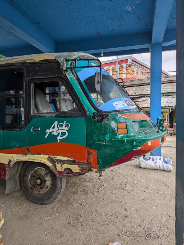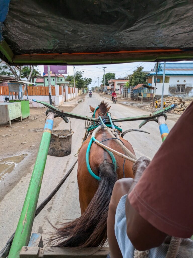 Wir glaubten, bereits in Bima die Fähre nehmen zu können, aber am Busterminal in Bima sagte man uns dann, dass wir mit dem öffentlichen Minibus weiter nach Sape müssen. Wir stiegen in die rostige Klapperkiste, das Gepäck wurde auf das Dach verladen, wie es in diesen Ländern üblich ist. Es war sehr stickig und heiß, und irgendwann hieß es, dass wir erst in einer Stunde abfahren. Nach mehreren widersprüchlichen Preisangaben wurde es den Franzosen zu bunt, und die freizügige Französin Océane stieg auf das Dach und begann unser Gepäck abzuladen, denn in Bima funktioniert wieder die Taxi-App Grab. Das passte den Busbetreibern (die oft eine richtige Mafia sind) überhaupt nicht und die Situation schaukelte sich auf. Ein aggressiver Mann schrie auf indonesisch auf die Franzosen ein und wollte die Koffer nicht mehr loslassen. Ein richtiges Gerangel um deren Koffer entstand, Romana und ich schauten, dass wir Abstand gewannen und gingen Richtung Ausgang. Der Mann schrie, er wolle die Polizei holen. Oh Gott, bloß das nicht, dachte ich mir. Dann sind wir alle dran, auch wenn wir nichts getan hatten. Gottseidank konnten sich dann alle losreißen und wir flüchteten auf die Straße einige hundert Meter weiter. Eine richtig üble Stadt hier, dieses Bima. Lustigerweise hatte ich schon ein schlechtes Bauchgefühl, als wir mit dem Schlafbus durch die Vororte fuhren, zu arm und heruntergekommen wirkte es auf mich. Wir konnten zum Glück gleich zwei Grab-Autos bestellen, die uns dann zum Hafen brachten. Dort bestätigte man uns, dass wir nach Sape mussten, um eine Fähre nach Labuan Bajo zu bekommen. Unser Grab Fahrer war dann super nett und ehrlich, eine willkommene Abwechslung – er kaufte uns sogar gekochte Maiskolben während der Autofahrt.