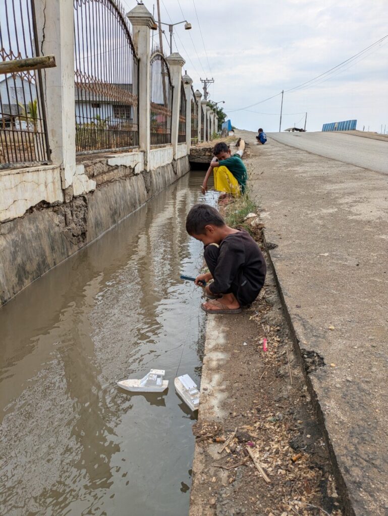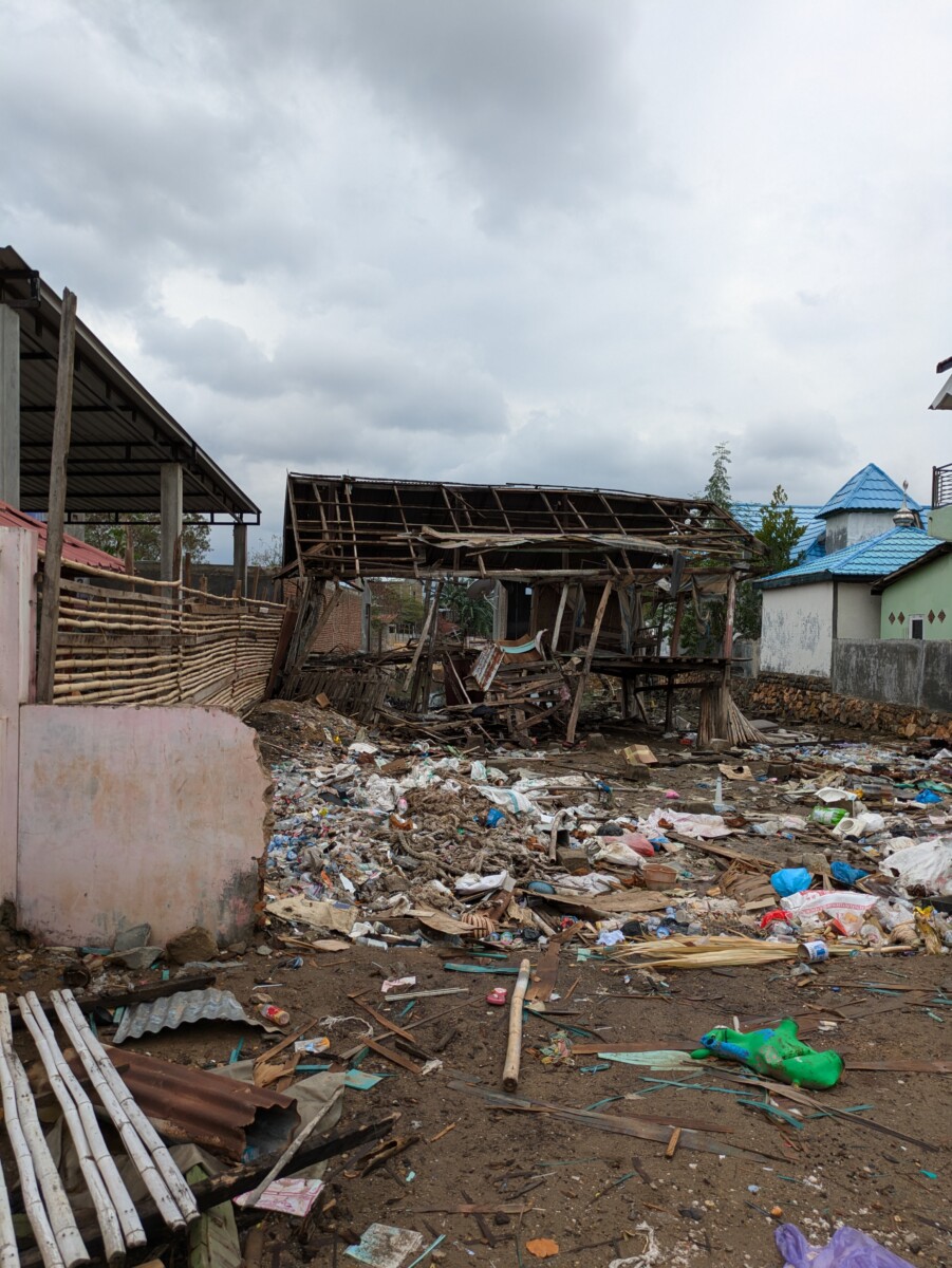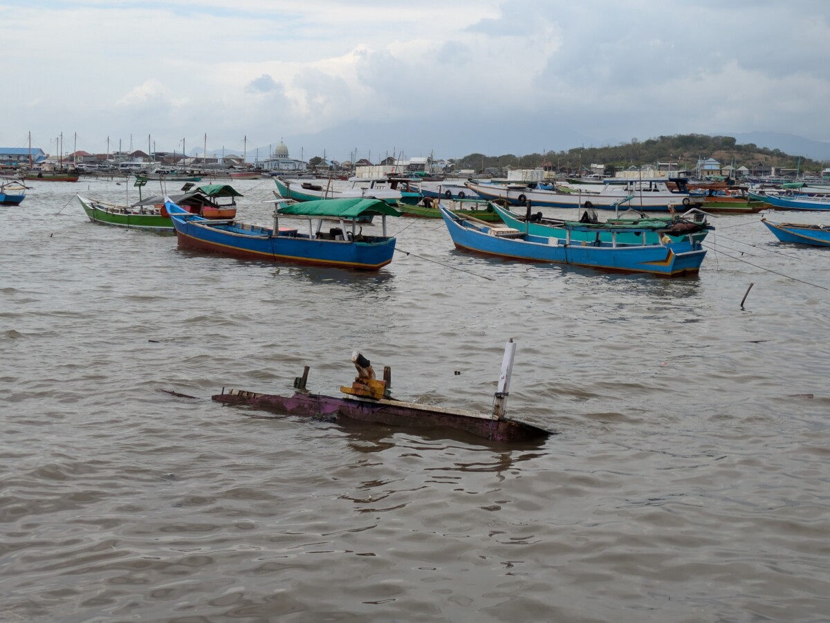 Der Hafen-Ort selbst war extremst zugemüllt und überall sieht man kleine Feuer, in denen Plastik verbrennt wird. Viele Häuser sind schon verfallen, aber auch manch schöne sind dabei! Im Hafen sieht man viele halb gesunkene Boote, die wohl nie wieder auslaufen werden. Wir sahen zumindest das erste Mal das echte, authentische und untouristische Indonesien seit unserer Ankunft.