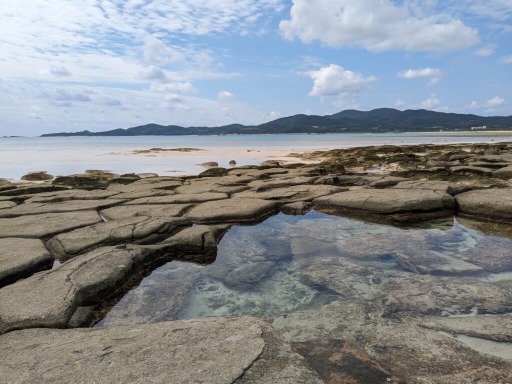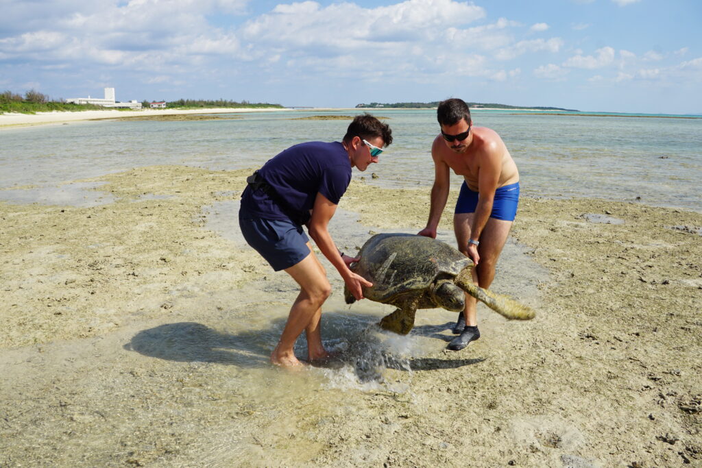 Am Mittwoch ging es mit dem Flieger zur kleinen, idyllischen Insel Kumejima. Neben einer Schildkrötenrettungsaktion haben wir uns beim Schnorcheln einen saftigen Sonnenbrand eingefangen, da es vormittags noch sehr bewölkt war, und wir die Sonnencreme im Hotel ließen… Beeindruckend hier war der einsame Sandstrand (leider auch sehr vermüllt, sobald man weiter vom Hotel weg ist!) und die „Tatami-ishi“, einzigartige geologische Steinformation an der Küste.