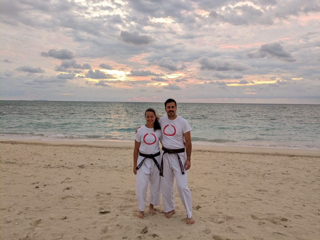 So, diesmal hat es leider etwas länger gedauert bis zum nächsten Beitrag, aber diese Woche hatten wir einfach sehr viel Programm! Letzten Sonntag abends kamen 37 Karatedo Doshinkan Mitglieder aus aller Welt in der Geburtsstätte des Karate zusammen – der Inselgruppe Okinawa, welche früher dem Ryukyu Königreich entsprach. Fast jeden Tag hatten wir 2 Trainingseinheiten, eine früh morgens zum Sonnenaufgang, und eine nachmittags.
