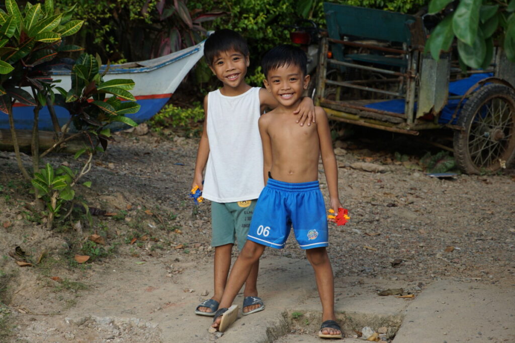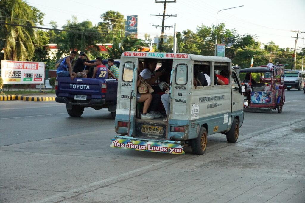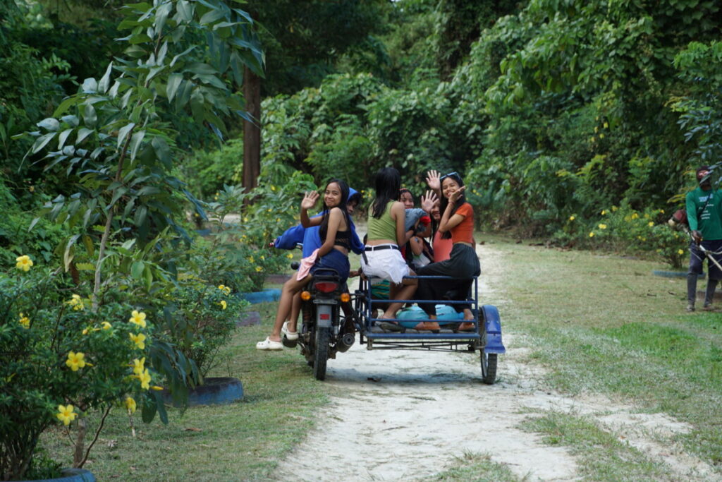 In Puerto Princesa auf Palawan warteten dann schon massenweise „Tricycles“ auf Kundschaft, welche so ähnlich wie die Tuk-Tuks in Thailand sind. Es handelt sich um überdachte Motorräder mit Beiwagen, die jede Menge Krawall machen, aber für kurze Strecken ein beliebtes Fortbewegungsmittel sind. Im Hotel wurden wir herzlich empfangen, und dadurch, dass fast alle Filipinos Englisch als zweite Sprache sprechen, ist die Kommunikation im Vergleich zu Japan angenehm einfach. Wir hatten zuerst etwas Sicherheitsbedenken in der Nacht in einer philippinischen Stadt zum Essen auszugehen, aber diese Bedenken erwiesen sich bis jetzt als völlig unbegründet. Natürlich muss man nicht mit den 1000-Pesos-Scheinen in der Öffentlichkeit herumwedeln, aber nach einer Woche Philippinen können wir sagen, dass die meisten wirklich sehr hilfsbereit und freundlich sind, und wenn man die Leute anlächelt auch meistens ein Lächeln zurückkommt. Die Kinder und Jugendlichen winken uns beim Vorbeifahren oft zu und schreien uns ein „Hellooo“ hinterher.