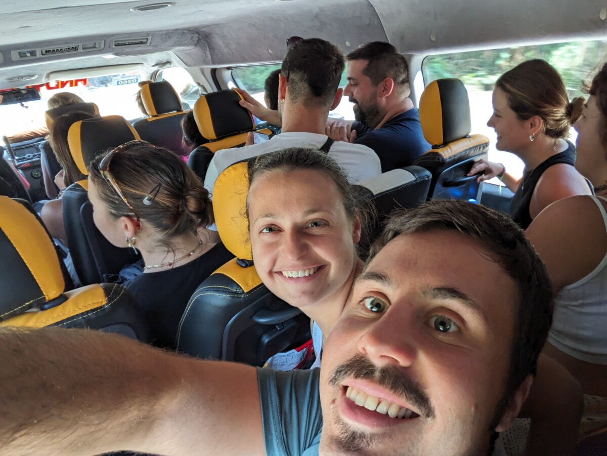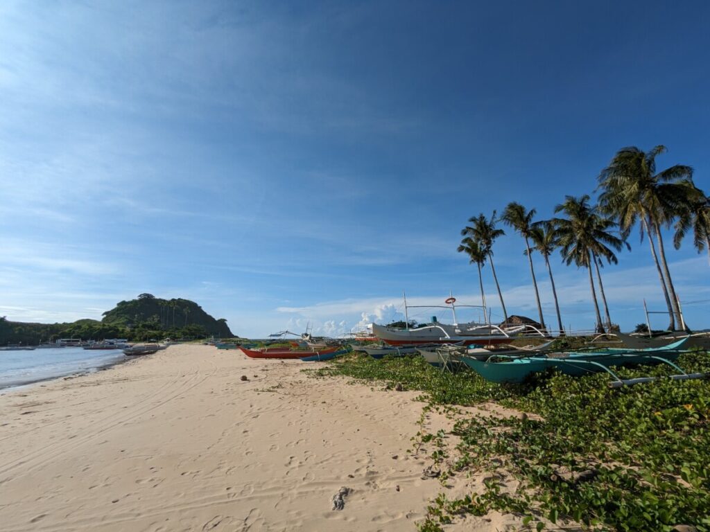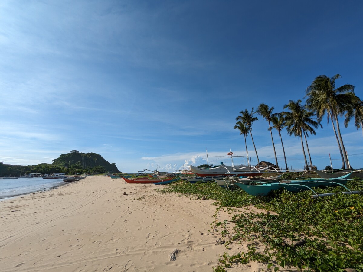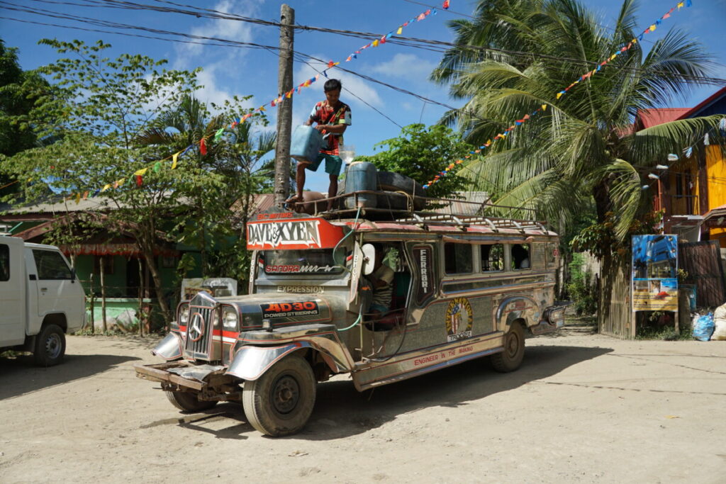 Wir buchten den Transport zum Fischerort Port Barton bei der Unterkunft und wurden am nächsten Tag von einem Minivan abgeholt. Dieser wurde mit 14 jungen Backpackern vollgestopft, und wir hatten das Pech, dass davon mind. 5 Spanier und 3 Italienerinnen dabei waren, die sich dann in den gesamten 4h Fahrzeit mit mind. 120 Dezibel lautstark unterhielten! Unfassbar, nach den unzähligen lautlosen und entpannten Fahrten in Japan.