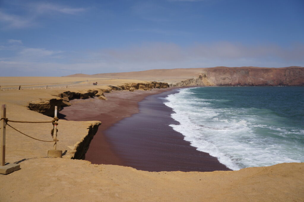 Im Küstenort Paracas, der bei in- und ausländischen Touristen gleichermaßen beliebt ist, stärkten wir uns zuerst bei einem verfrühtem Mittagessen und mit frischem Erdbeer-Shake! Erdbeeren sind hier in Peru wieder sehr beliebt, werden zuhauf angebaut und sind deswegen auch nicht teuer. Da wir noch recht früh dran waren für den Check-in und bei der Unterkunft keiner auf die Klingel reagierte, ließen wir uns kurzerhand im Lokal daneben nieder und machten längst überfällige Anrufe zuhause 😉 Als dann um 15:00 Uhr Nachmittag immer noch niemand aufmachte und auch nicht auf WhatsApp reagierte, wurde es uns zu blöd, denn wir waren ja seit letzter Nacht unterwegs und wollten dringend duschen. Wir stornierten die Unterkunft über die App, gingen zwei Straßen weiter zur Hospedaje Mary, die uns gleich einen guten Preis machte. Ich hatte leider irgendwas feineres aufgeschnappt, genauer gesagt Halsweh und grippeähnliche Symptome, aber so schlimm war es dann auch nicht.