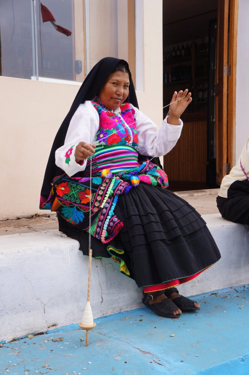 Am Montag ging es mit unserem “Slow-Boat” noch zur Insel Taquile. Das Wetter war herrlich und wir genossen den Spaziergang quer über die Insel in vollen Zügen. Es war so idyllisch und friedvoll, nur etwa 1700 Bewohner hat das saubere Taquile zu verzeichnen. An den Farben der Hüte bzw. Zipfelkappen erkennt man den Status innerhalb der Gemeinschaft. Wer einen schwarzen Hut trägt, ist Vorstand einer Gemeinde. Eine rote Kappe zum Beispiel bedeutet verheiratet zu sein. Spinnen, Sticken und Stricken scheinen die Hauptbeschäftigungen zu sein, so ziemlich jede Frau hält eine Handspindel und sogar während dem Gehen wird gesponnen. Nach einem satten Mittagessen (Forelle) ging es wieder zurück nach Puno und einer der besten Ausflüge auf unserer gesamten Reise ging zu Ende.