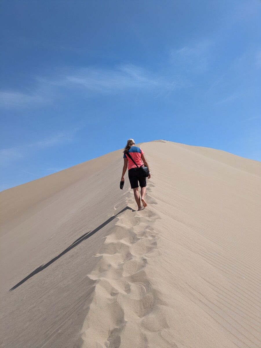 Wir blieben nur eine Nacht, damit hat man Huacachina auch schon ausreichend gesehen. Außerdem sind die billigsten Unterkünfte dreimal so teuer als sonst im Land. Trotzdem waren wir sehr beeindruckt von den Bergen aus Sand! Als wir um ca. 09:00 Uhr barfuß auf die hohe Düne nebenan stiegen, war der Sand bereits fast unaushaltbar heiß und wir verbrannten uns beim Abstieg fast die Füße 🙈