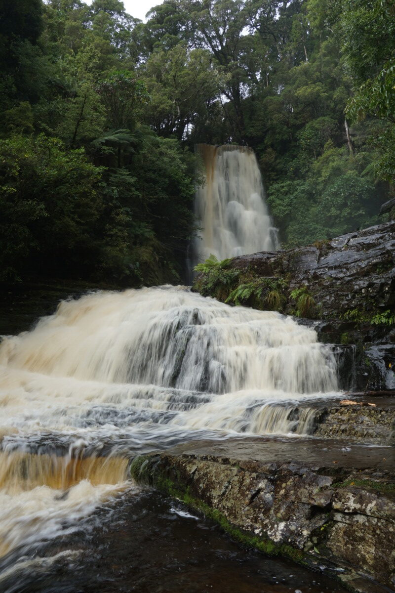 Nach einem Abstecher zum McLean Wasserfall, der aufgrund der vergangenen Regentage total braun ging, fuhren wir zu einem abgelegenen DOC Campingplatz am Catlins River. Das Department of Conservation ist quasi das Umwelt- oder Naturschutzministerium in Neuseeland und unterhält unter anderem Nationalparks, historische Plätze, Wanderwege, Hütten und eben auch viele (einfache) Campingplätze. Die meisten davon haben nur ein Plumpsklo und kosten 10 oder 15$ pro Person pro Nacht, was für hiesige Verhältnisse recht wenig ist, aber einige sind auch gratis!