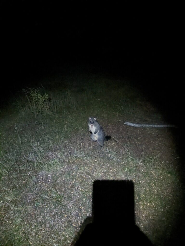 Zum Abendessen gab es diesmal nur eine Fertigsuppe mit Knoblauchbrot. Als wir zum Zähneputzen nochmals ausstiegen war es schon stockdunkel. Plötzlich „galoppierte“ etwas von hinten auf Romana zu, welche sich erschrocken umdrehte. Als das Licht der Stirnlampe auf das angreifende Tier fiel, änderte dies seinen Kurs und zischte Richtung Wald davon. Wir sahen nur noch eine dicke, graue Fellkugel davonhüpfen…. Wahrscheinlich ein fettes Possum, wie die unbeliebten, eingeschleppten Beutelratten hier heißen. Das Possum hat sich wahrscheinlich noch mehr erschrocken als wir, sobald es in seinem Sturmlauf uns als Menschen erkannt hat! Wir lachten noch eine ganze Weile darüber, vor allem wegen dem lauten Getrappel, das auch von einem Pony oder Schaf hätte sein können 😂