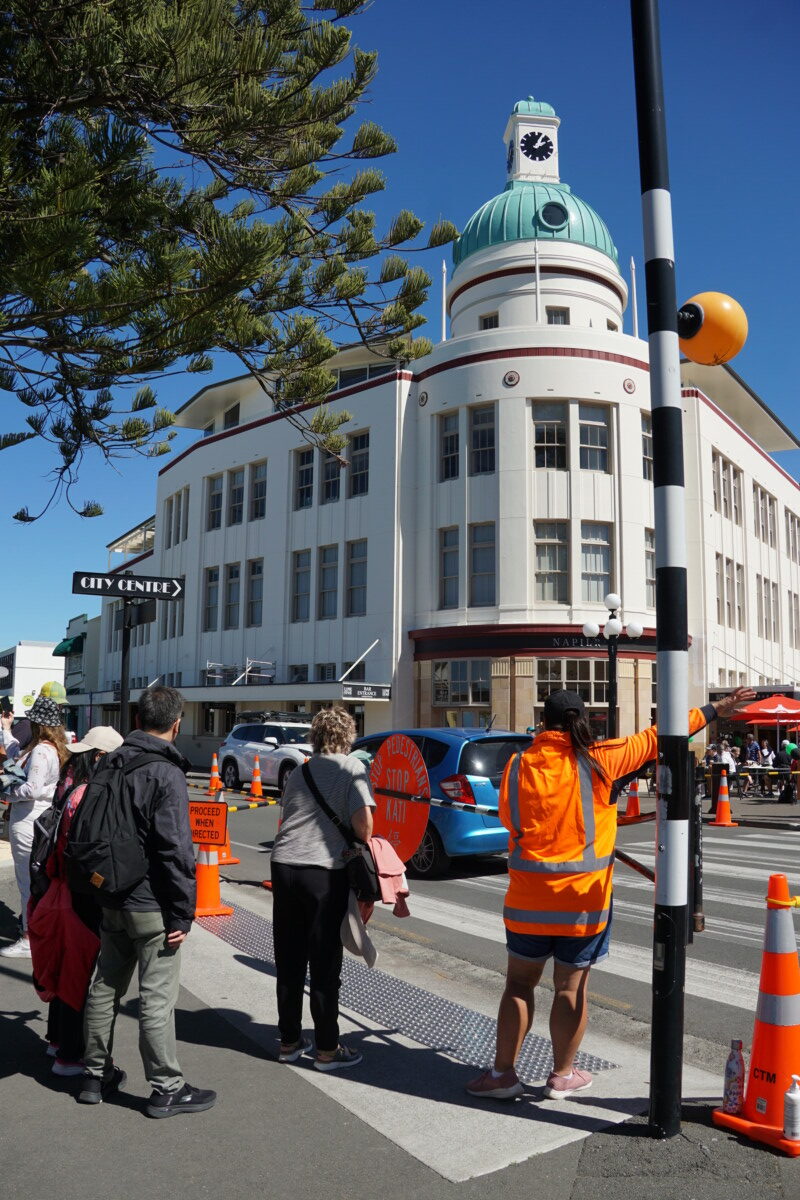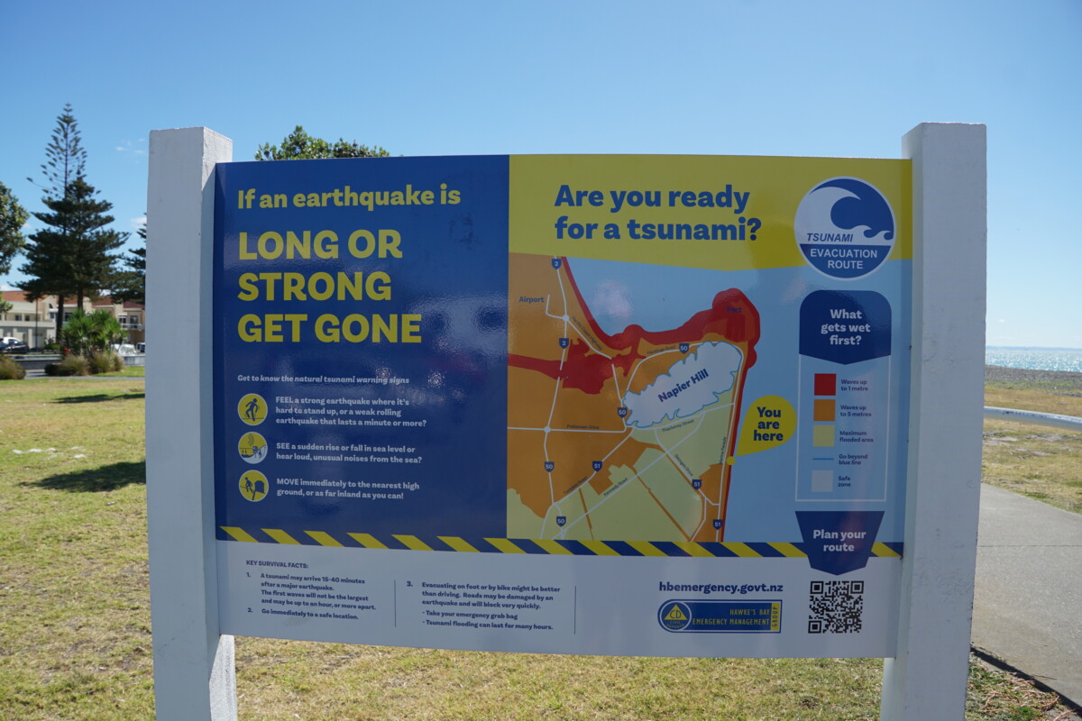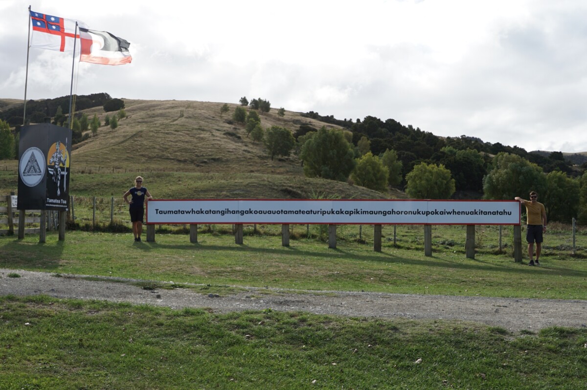 Der darauffolgende Tag startete mit einem spaßigen Besuch im Faraday Museum, da viele alte technische Dinge spielerisch und interaktiv erkundet werden können. Danach machten wir eine kurze, aber schöne Wanderung im Te Mata „Gebirge“, nur 30 Minuten von Napier entfernt. Anschließend ging es noch weiter zum Taumatawhakata….. ihr wisst schon. Das meterlange Schild ist ein beliebtes Fotomotiv bei Touristen, aber um den Hügel selbst zu besteigen, muss man leider mit dem Landbesitzer Kontakt aufnehmen, da man Privatgelände durchqueren muss, was wir dann auch nicht getan haben. Vielleicht ist euch die schwarz-rot-weiße Flagge beim Titelbild aufgefallen – das ist die offizielle Flagge der Maori.