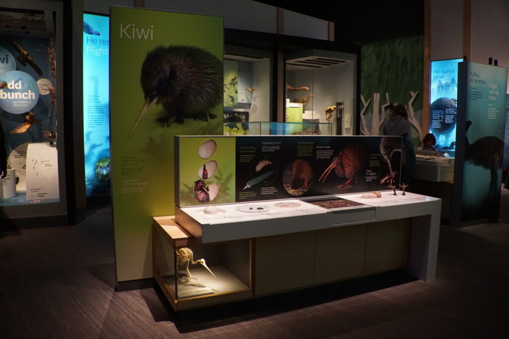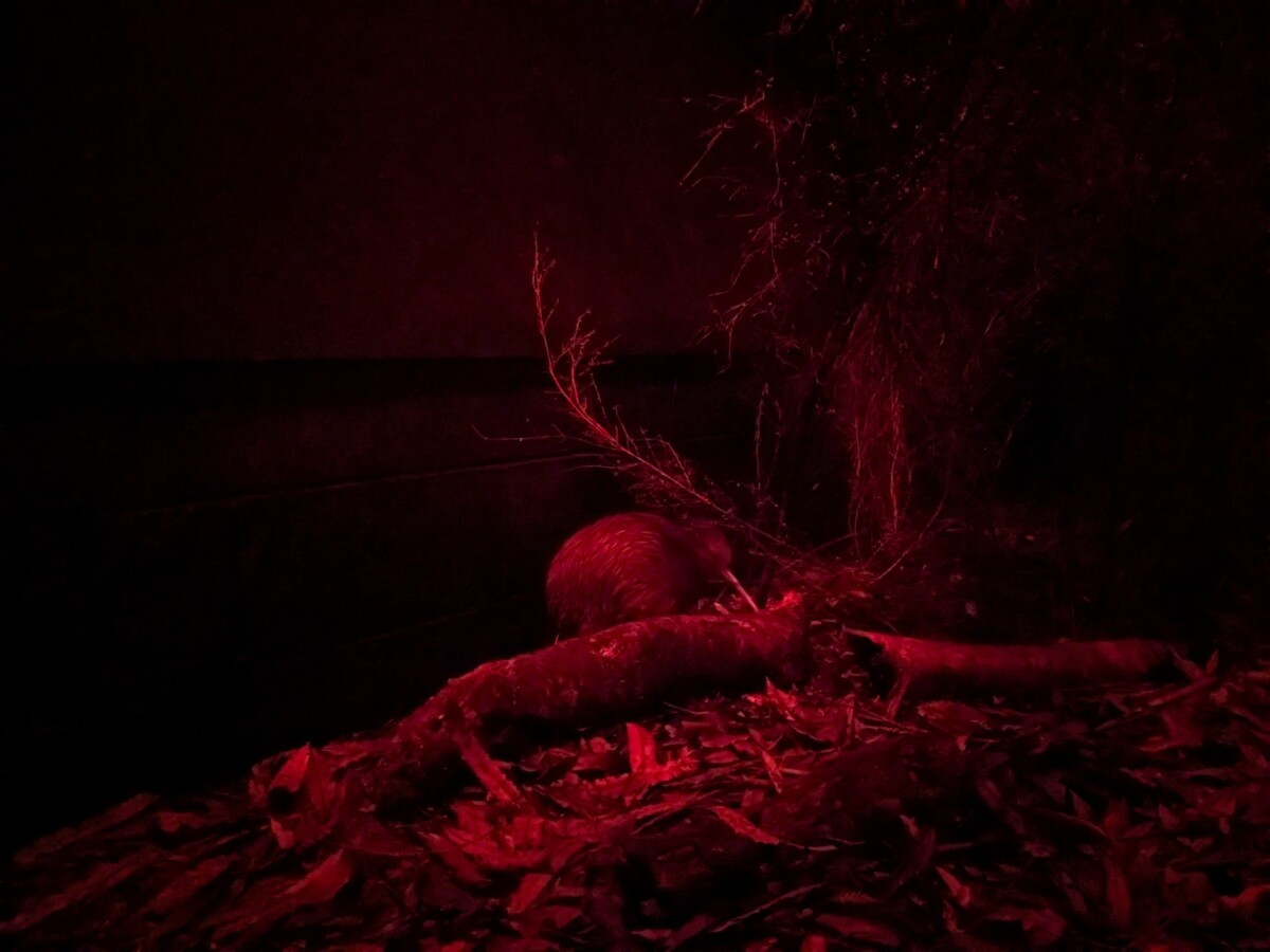 Eigentlich wollten wir am nächsten Morgen dann ins Schwimmbad in Masterton gehen, da die letzte Dusche doch nur im Bachwasser erfolgte. In Neuseeland sind aber leider viele Bäche von der extremen Landwirtschaft mit Schadstoffen und Keimen belastet. Das Schwimmbad hatte am Vormittag aber für ein Schulschwimmen geschlossen, weshalb wir kurzfristig zum nahegelegenen Pūkaha National Wildlife Centre fuhren. Dort gibt es unter anderem Kiwis zu sehen, also den National-Vogel der Neuseeländer, welche sich sogar selbst als Kiwis bezeichnen. Die Kiwis sind flugunfähig und haben nur ganz winzige Flügel, die nicht mehr zu sehen sind, da sie ursprünglich keine Fressfeinde auf den Neuseeländischen Inseln hatten. Siedler schleppten dann Feinde wie Possums, Ratten und Katzen an. Diese werden aktuell versucht rigoros mit zigtausenden von Fallen und Giftködern im ganzen Land ausgerottet zu werden. Da die Kiwis (die Tiere, nicht die Neuseeländer 😉) nachtaktiv sind, wurde hier im Kiwi-House Tag und Nacht umgedreht und man kann die süßen Flauschkugeln, im schwachen Rotlicht im Laub nach Würmern und Kleingetier suchend, beobachten. Auch einer Fütterung der weltweit größten Aal-Art, den neuseeländischen Langflossenaalen, wohnten wir bei.