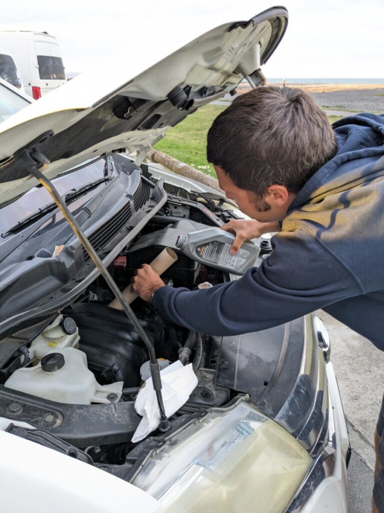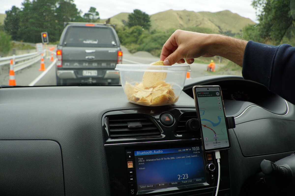 Unser Ziel für diesen Tag war aber noch nicht erreicht, es ging noch eineinhalb Stunden weiter auf der Road 52, da kamen uns dann während der gesamten Fahrt vielleicht nur eine Hand voll Autos entgegen. Noch weitere 15min Schotterstraße brachten uns dann endlich zu den Waihi-Falls, wo wir die Nacht verbrachten und sich sonst kein anderer mehr hin verirrte. Wirklich sehr abgelegen, hoffentlich keine Panne in dieser Gegend dachten wir uns, bis da ein Abschleppdienst hinkommt ist unser Visum abgelaufen… Handy-Empfang gab es nur in den Mini-Ortschaften, die oft wie ausgestorben wirkten (und es oft auch schon fast sind).