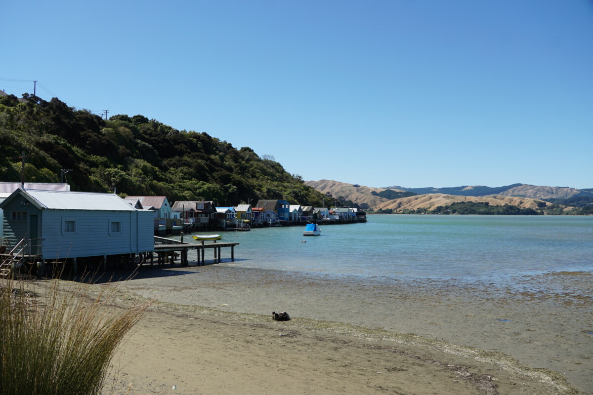 Es war zwar eine weite Fahrt, aber dort angekommen erwartete uns ein menschenleerer Strand mit vielen bunt schimmernden Paua-Schnecken-Gehäusen. Sonst gab es nur ein paar brandneu gebaute Häuser, die zum Verkauf angeboten waren, aber 1h Fahrzeit zum nächsten Geschäft und zur Zivilisation dürfte die Zahl der Interessierten dann doch einschränken.