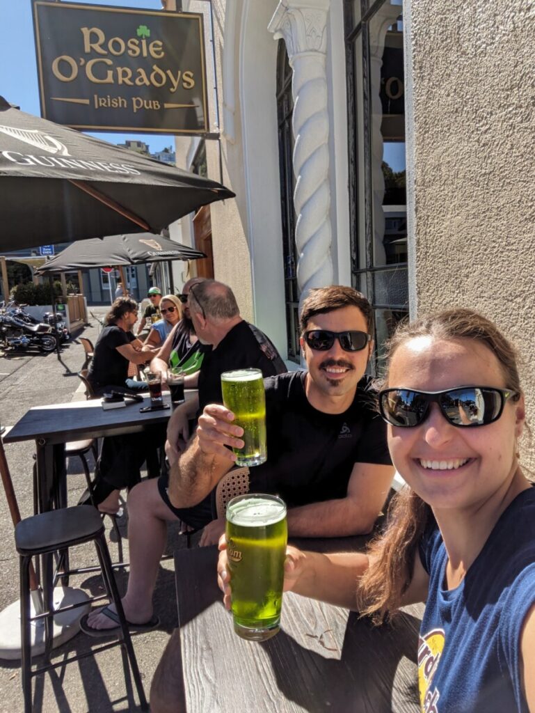 Nach diesem kalten und holprigen Erlebnis (da schätzt man wieder den Neoprenanzug als Polsterung!) fuhren wir dann weiter nach Napier. Dort schlenderten wir durchs Zentrum, spielten eine Partie Minigolf und kehrten in ein Irish Pub ein, um den St. Patrick’s Day mit Bier und Cider gebührend zu feiern.