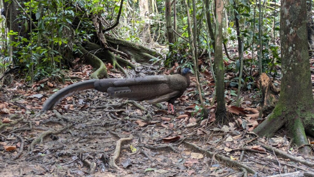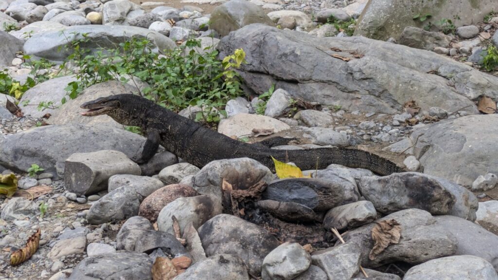 Am zweiten Tag kamen wir dann sogar noch den selteneren schwarzen Gibbons oder Siamang ziemlich nahe. Schildkröten, Geckos und auch Nashornvögel konnten wir beobachten, deren riesige Schwingen beim Fliegen ein lautes Geräusch verursachten. Schlangen oder Spinnen sahen wir keine, die seien aber auch mehr nachtaktiv, hieß es. Weiter im Inneren des Nationalparks findet man noch den Sumatra Tiger, das Sumatra Nashorn, Elefanten und den Malaienbär, allesamt stark gefährdet. Nach mehreren Stunden Auf und Ab in teilweise echt steilem Gelände erreichten wir das Camp für Nacht 2 an einem diesmal größerem Bach, auf dem wir dann am nächsten Tag nach Bukit Lawang zurück “raften” sollten.