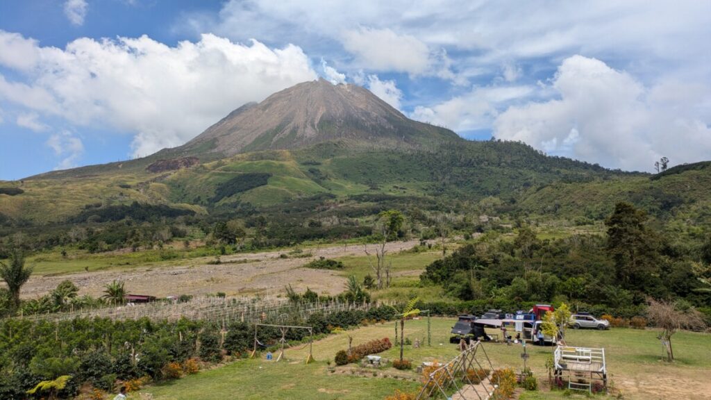 Am nächsten Tag ging unsere Reise weiter zum Tobasee, dem größten Kratersee der Welt, etwa dreimal so groß wie der Bodensee. Vor 74.000 Jahren brach der Supervulkan Toba dermaßen aus, dass vulkanisches Material 50 km hoch in die Atmosphäre geschleudert wurde und die Erde um bis zu 15°C abkühlen ließ. Es wird vermutet, dass dadurch die Menschheit fast ausgerottet wurde, nur etwa 15.000 Individuen Homo erectus dürften in Afrika überlebt haben! Ist das nicht irre?