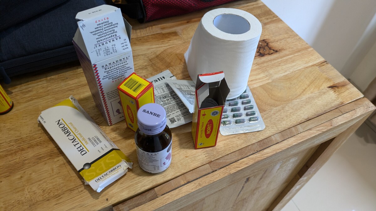 Romana ging es leider mit der Verdauung immer noch nicht besser, die Kohletabletten-Kur half diesmal leider nicht. Einen Krankenhausbesuch wollten wir vermeiden, zudem die nächste gute Klinik in Medan einige Stunden Autofahrt entfernt ist. Irgendein Keim wird es wohl sein, war meine Vermutung, ein Antiobiotikum würde wahrscheinlich nicht schaden. Nach Rücksprache mit einer befreundeten Ärztin, die mir die Selbstmedikation von Romana mit Azithromycin bestätigte, ging ich gleich bei unserer Ankunft in Samosir in eine Apotheke, in der Hoffnung alles zu bekommen. Und tatsächlich, in der kleinen Dorfapotheke bekam ich rezeptfrei das Antibiotikum, Buscopan gegen die Bauchkrämpfe und Tigerbalsam gegen den Husten. Bereits am nächsten Tag schien das Antibiotikum gewirkt zu haben und Romana ging es endlich auf einen Schlag besser! Das merkte ich vor allem daran, dass sie auf einmal nur noch von Essen redete. Ja, so gut das indonesische Essen auch überall ist, speziell die letzten Wochen träumten wir schon öfters von Wienerschnitzel und Speckknödel…