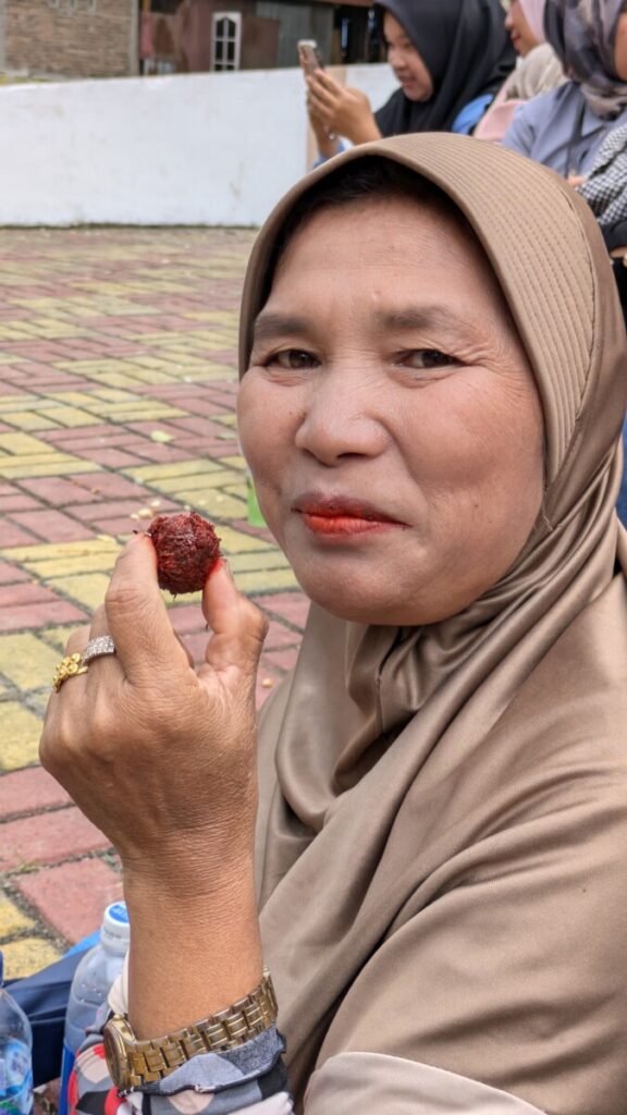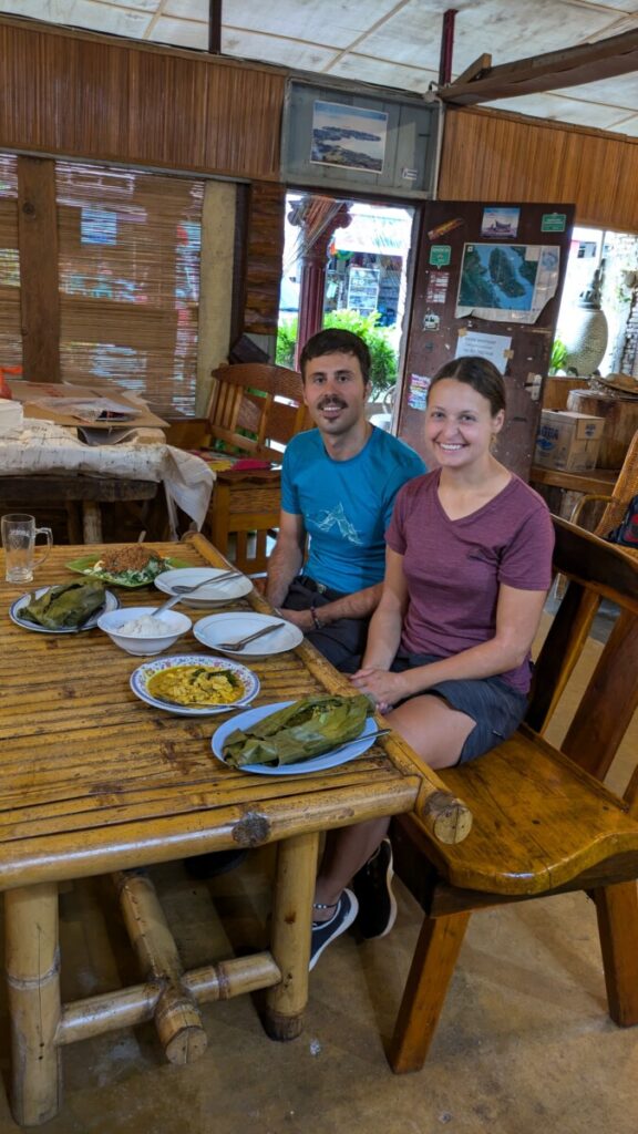 • Das Essen war eigentlich überall gut. Nasi Goreng (gebratener Reis) oder Mie Goreng (gebratene Nudeln) gingen immer und überall! Patricks Lieblingsspeise, die es jedoch fast nirgends gab, war Beef Rendang, ein in Kokosmilch gekochtes Rindfleisch. Zu Romanas Leidwesen war auf Sumatra das Essen immer scharf, auch wenn man „not spicy“ dazusagte 😉